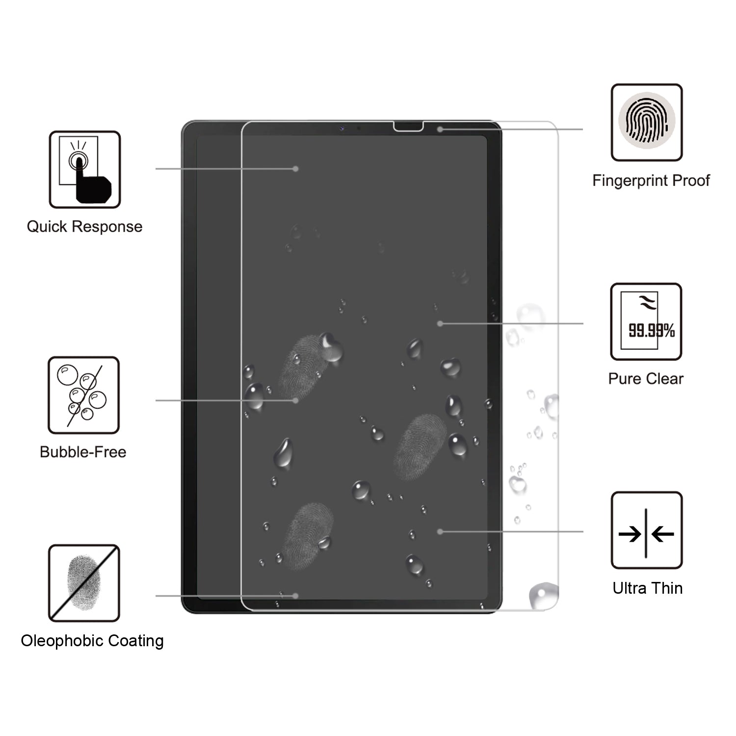 This protective film is made from chemically processed real glass, with high transparency and delicate touch feeling. The tempered glass has an oleophobic coating to prevent contaminants. With secure anti-explosion function, it will not be broken into small pieces of sharp.