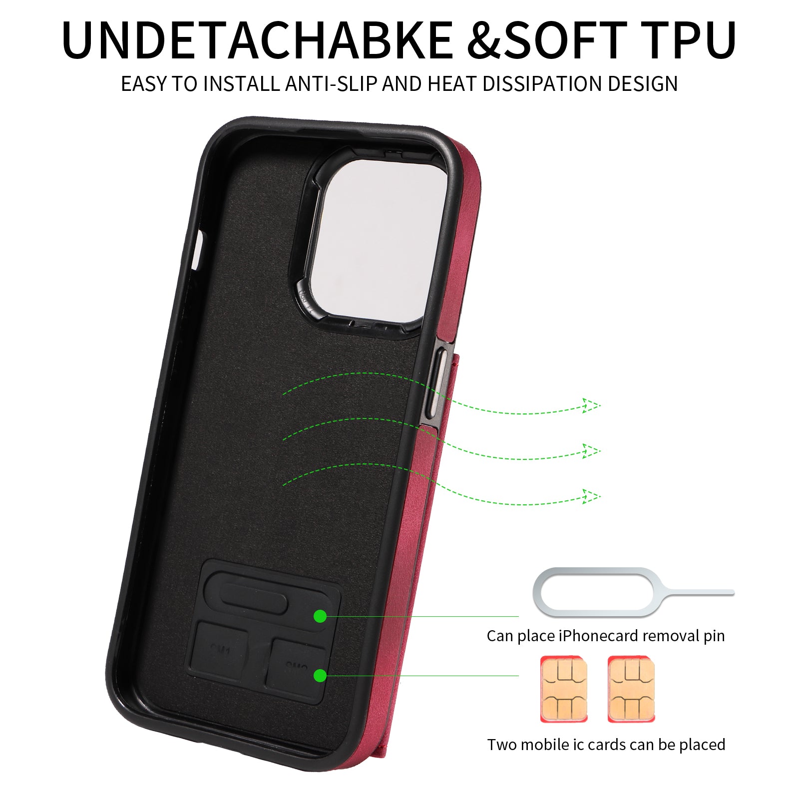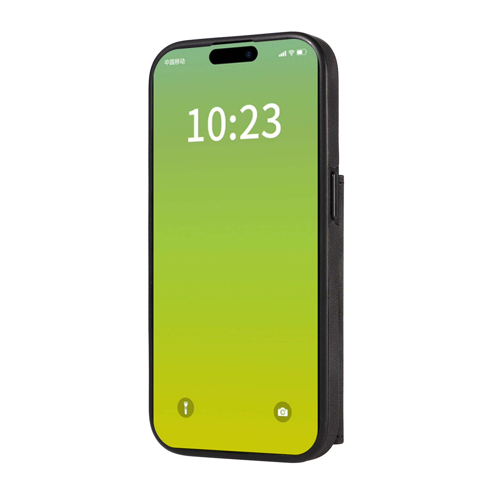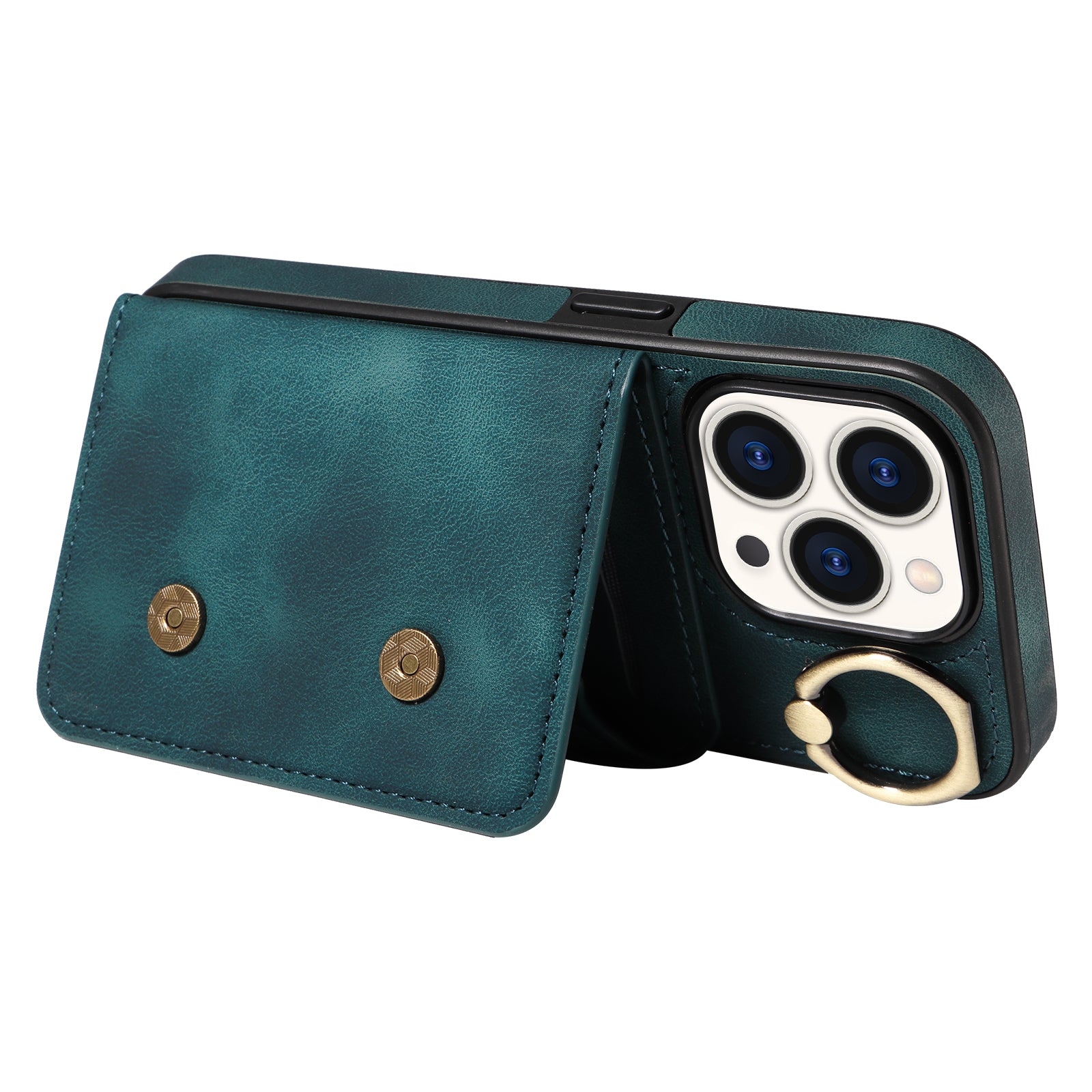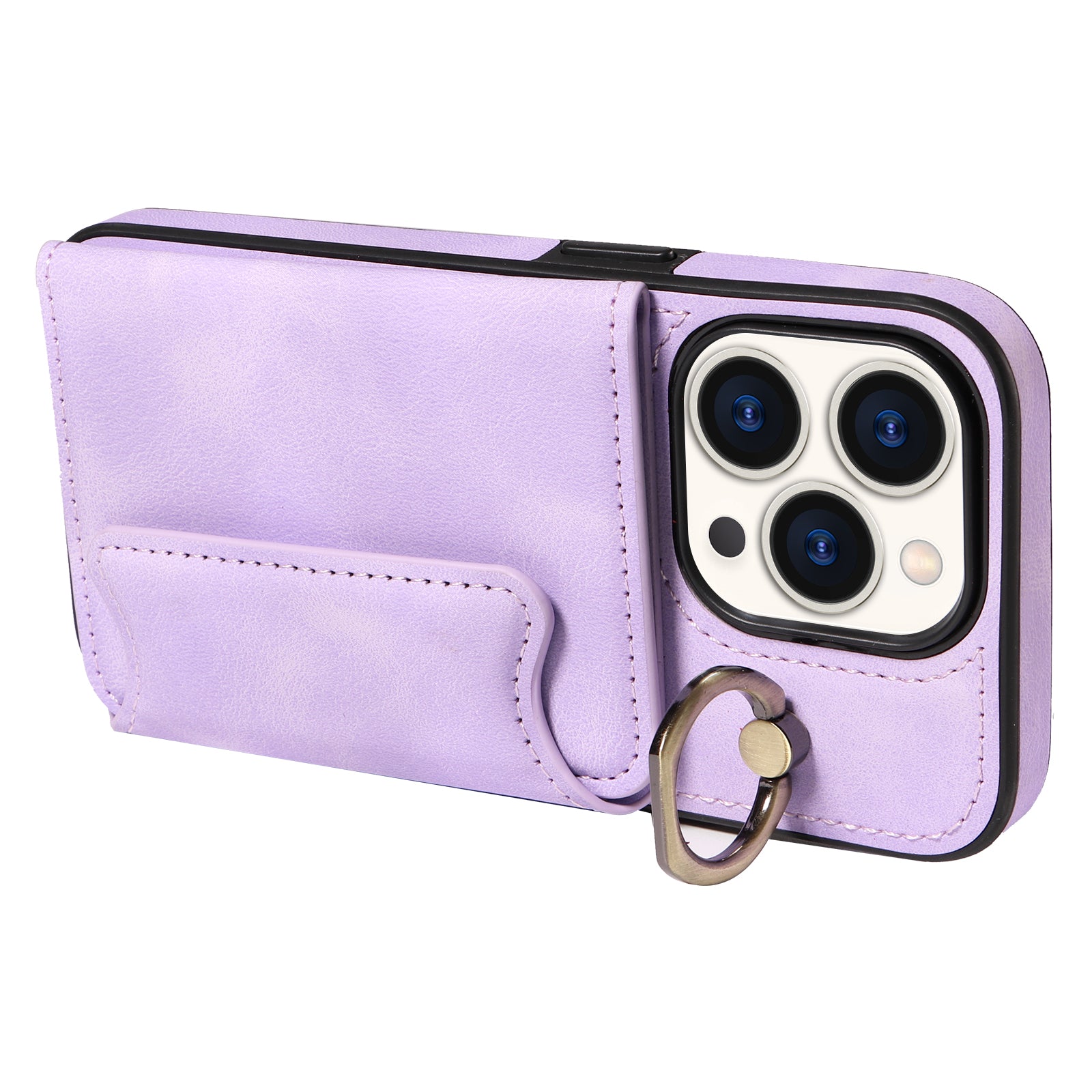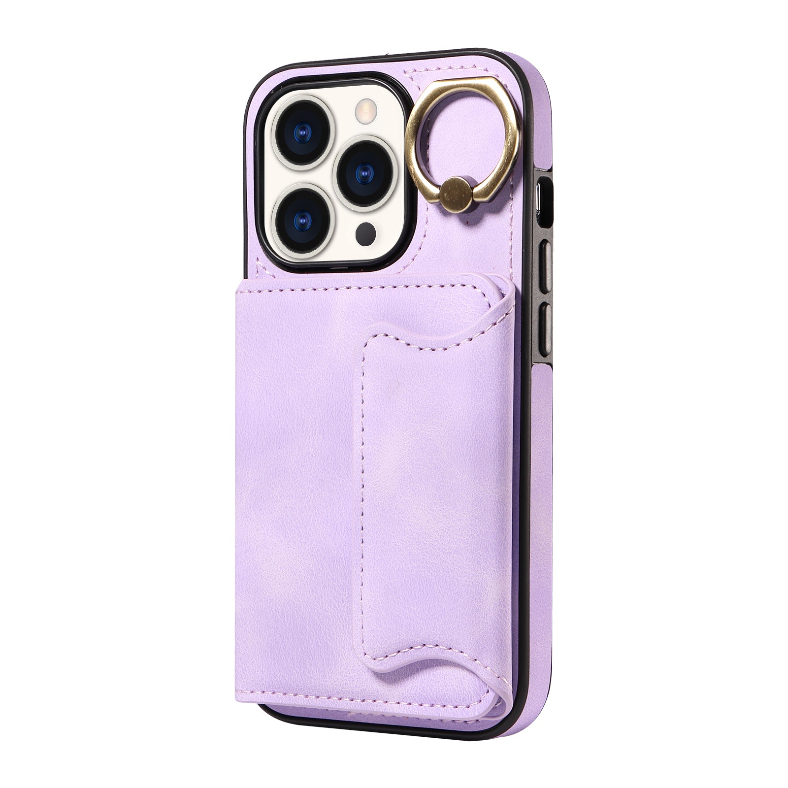 001 Card Holder Phone Case for iPhone 15 Pro , PU Leather Coated TPU Cover with Ring Kickstand