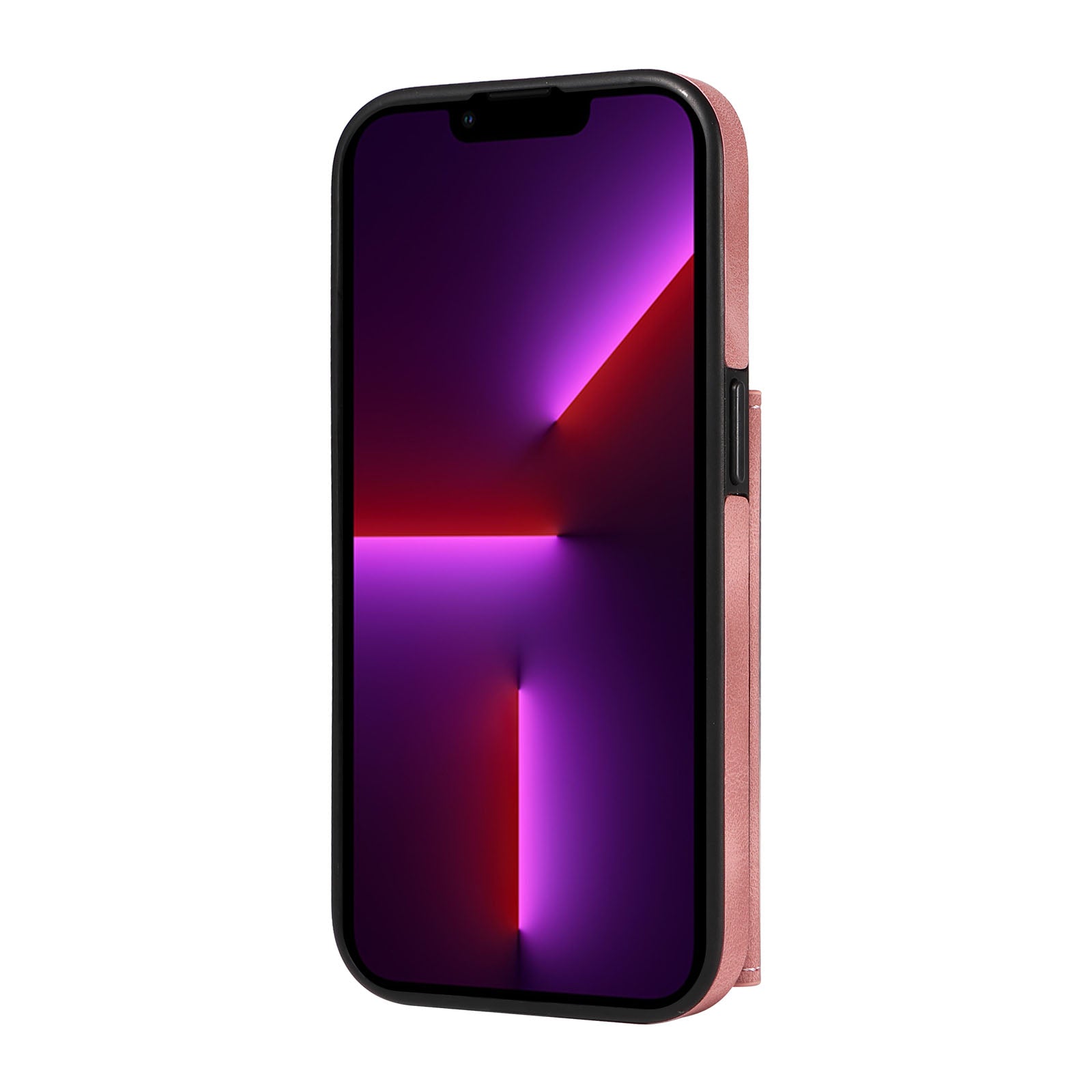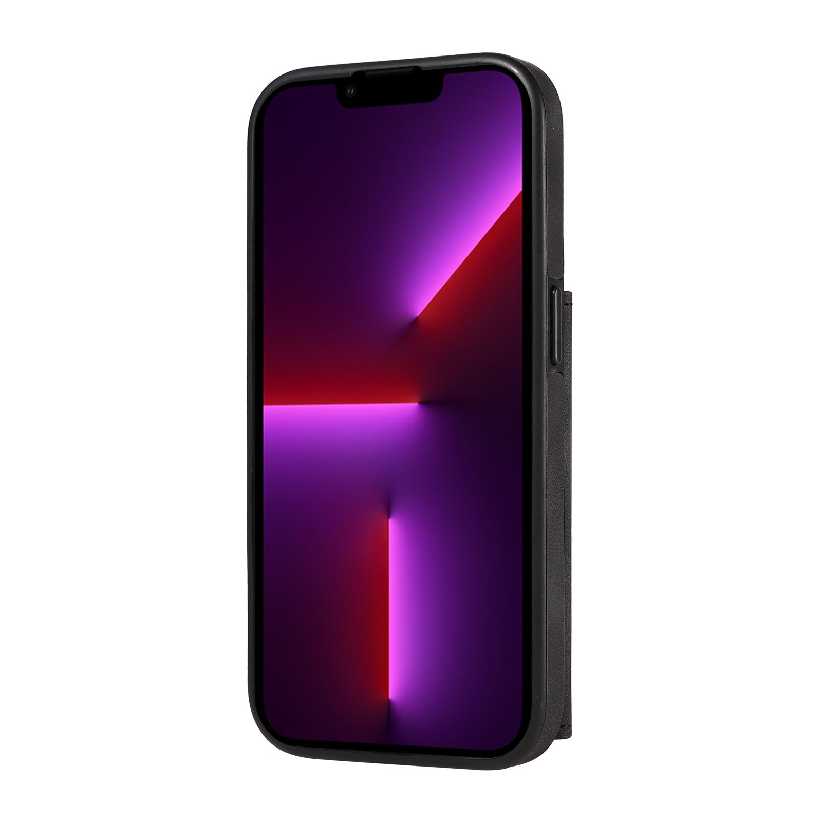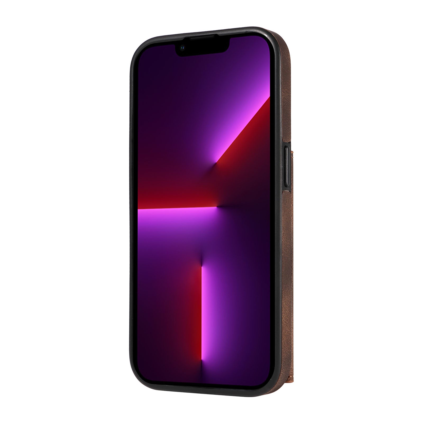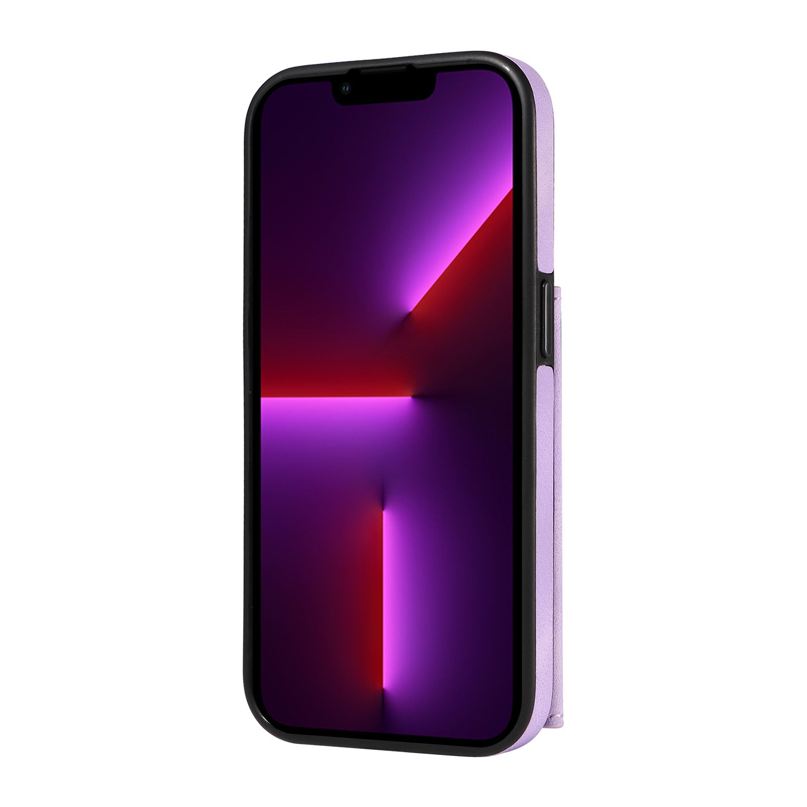 001 For iPhone 13 Pro 6.1 inch Card Holder PU Leather Coated TPU Cover Ring Kickstand Phone Case