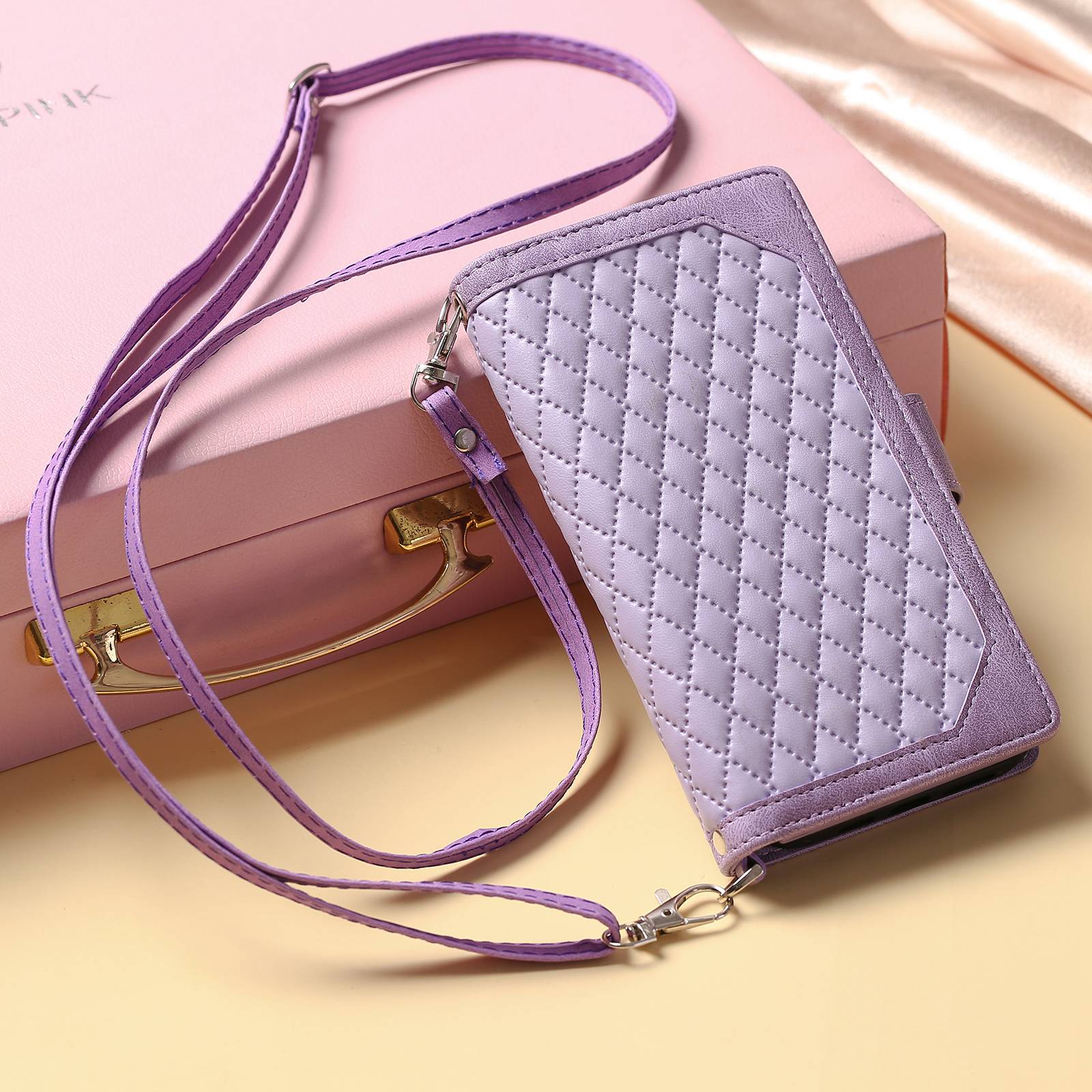 005 Style For Samsung Galaxy A51 4G SM-A515, Rhombus Texture Wallet Style PU Leather Phone Case Zipper Pocket Stand Feature Shell with Strap