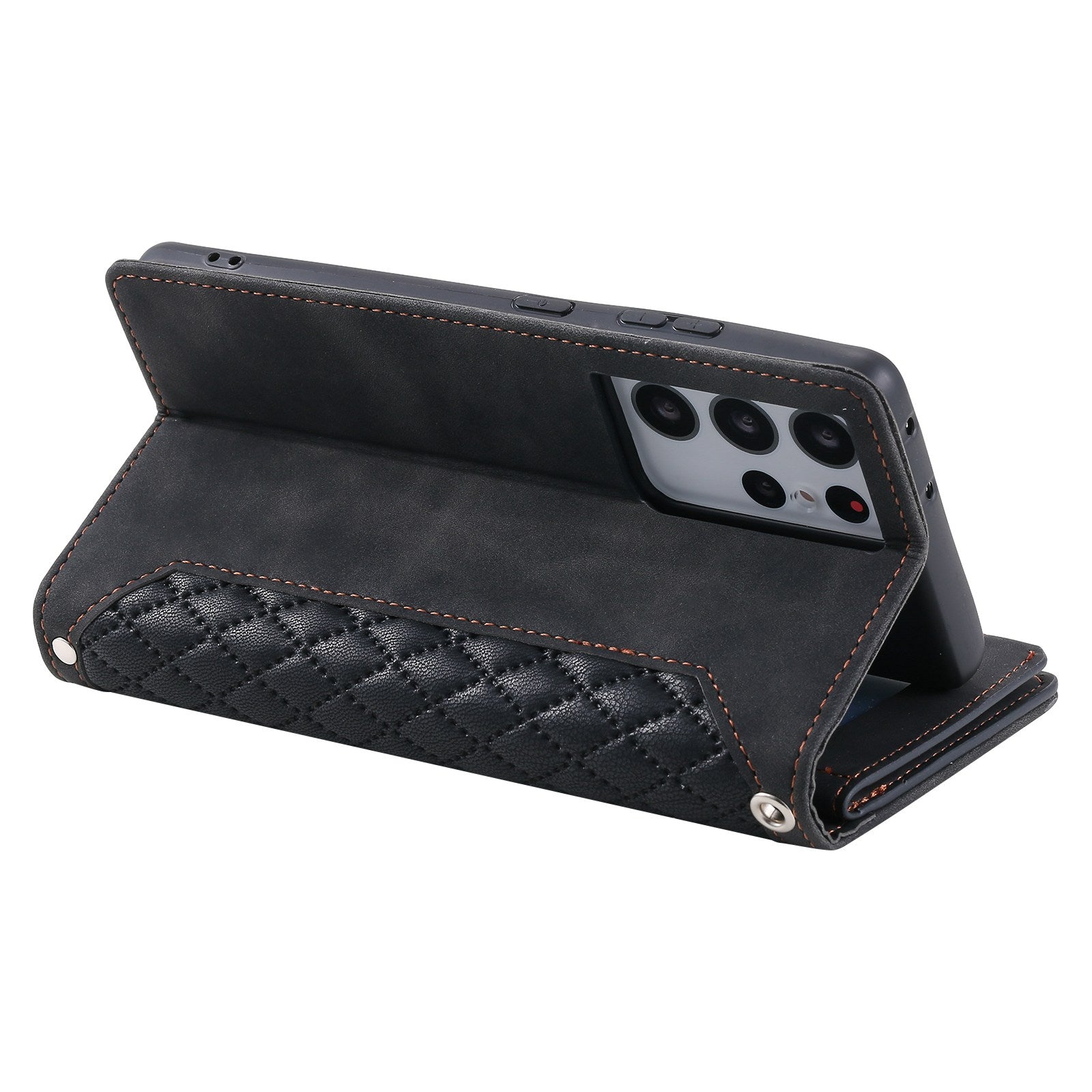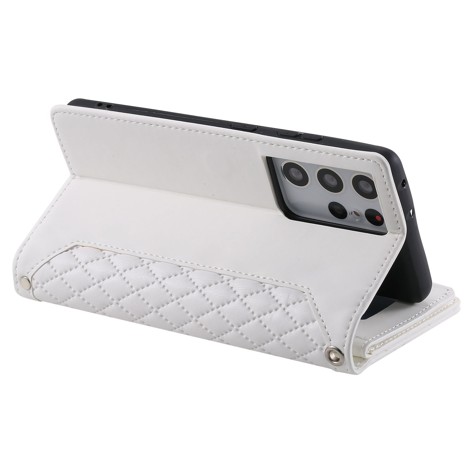 005 Style For Samsung Galaxy S21 Ultra 5G, Full Protection Phone Wallet Cover Zipper Pocket Case Rhombus Texture PU Leather Shell Stand with Strap Card Holder