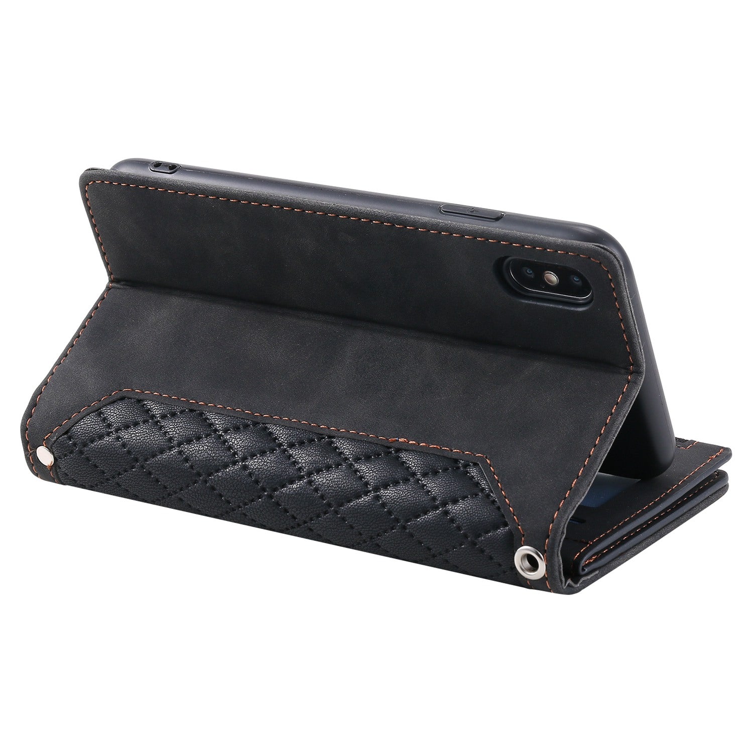005 Style Leather Case with Strap for iPhone XS Max 6.5 inch, Rhombus Texture Zipper Pocket Phone Cover with Stand Wallet