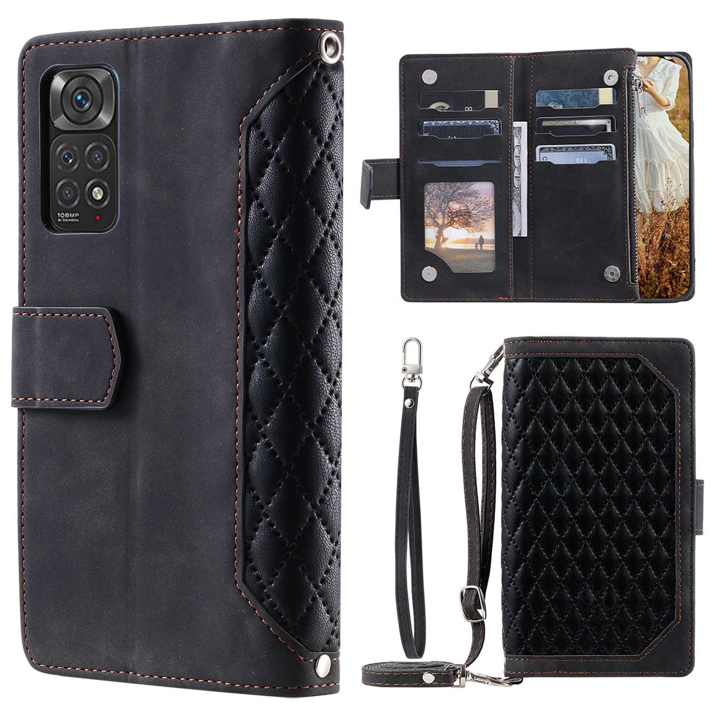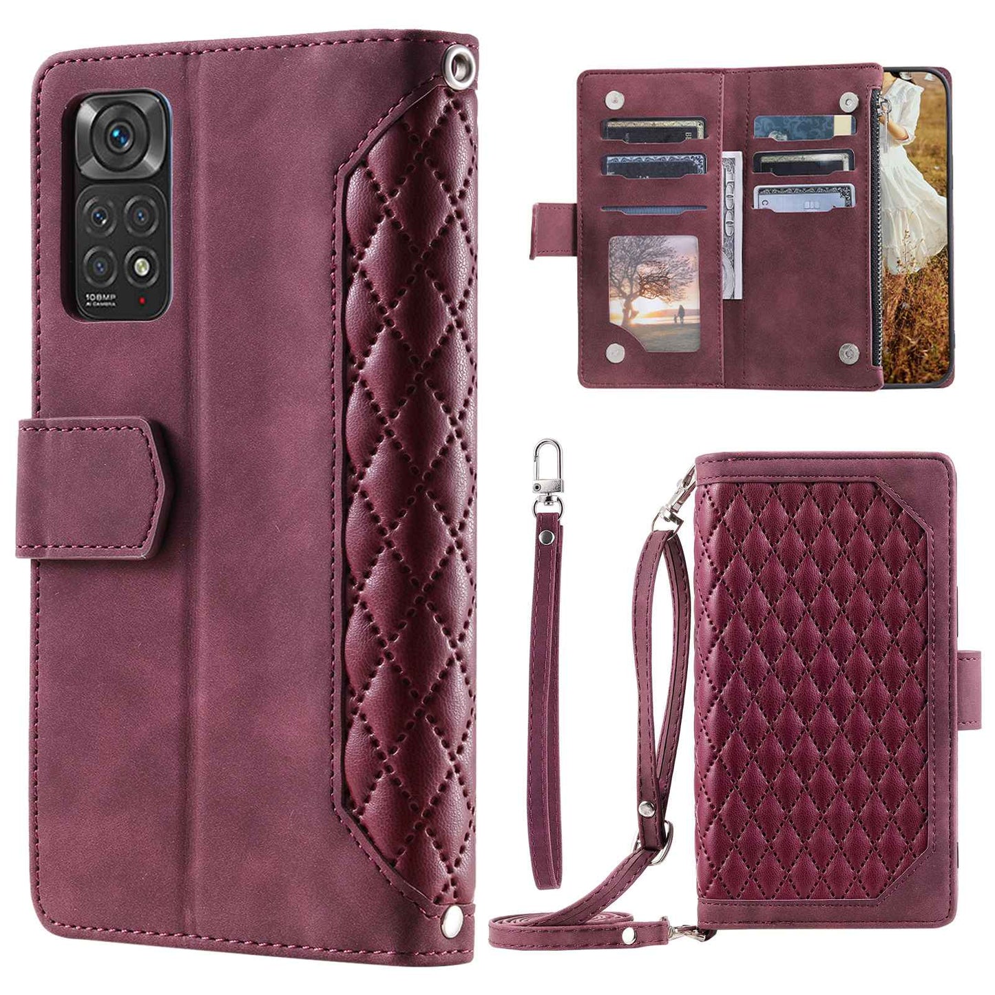 005 Style Phone Case for Xiaomi Redmi Note 11S 4G / Note 11 4G (Qualcomm), Leather Rhombus Texture Full Body Protection Stand Wallet Feature Cover with Zipper Pocket