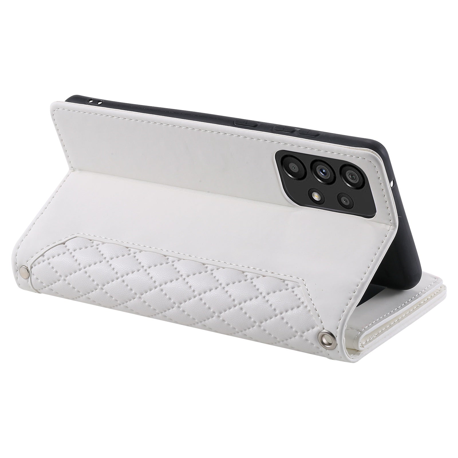 005 Style Phone Protective Cover for Samsung Galaxy A53 5G, Rhombus Texture PU Leather Zipper Pocket Stand Wallet Case with Wrist Strap