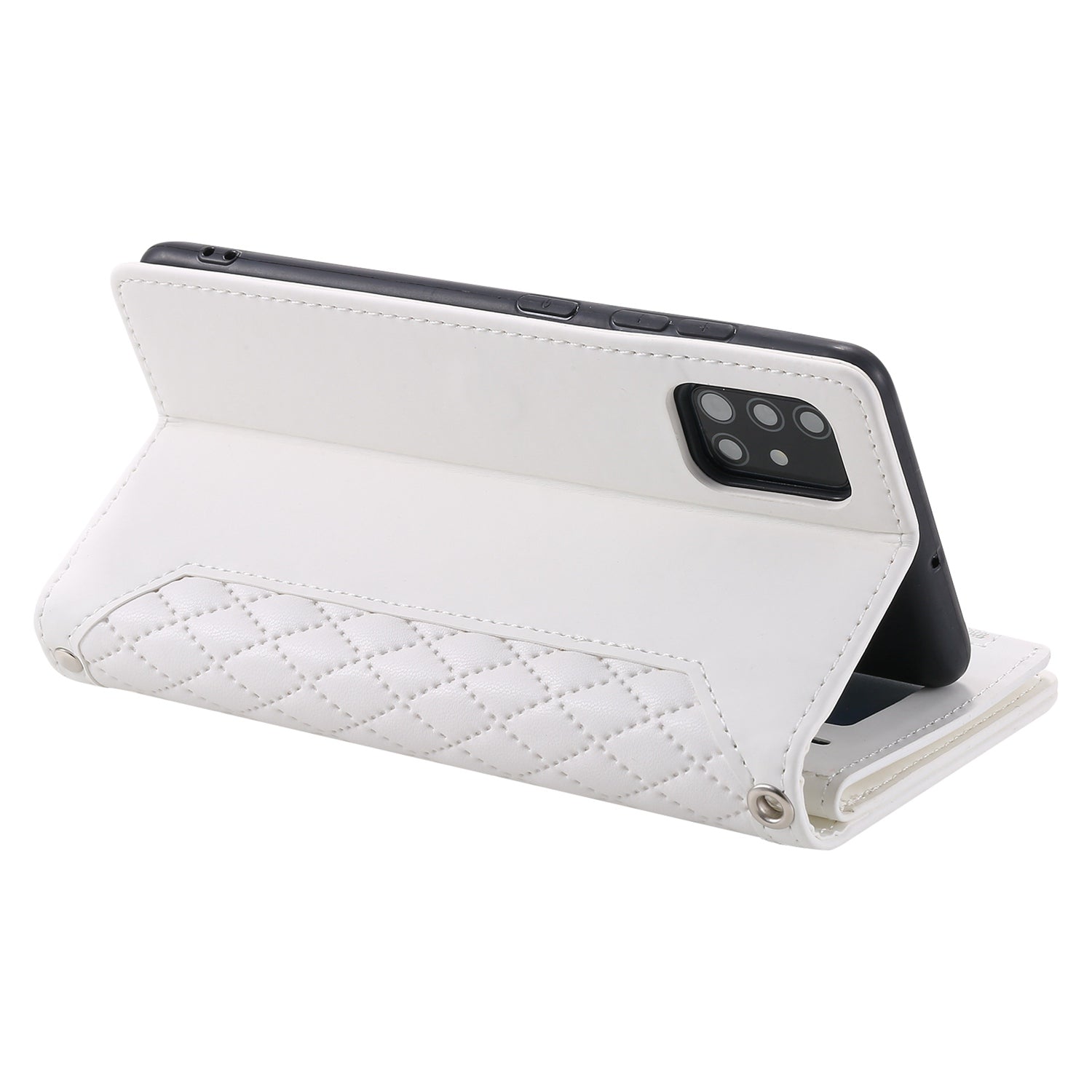 005 Style Rhombus Texture Phone Case for Samsung Galaxy A71 4G SM-A715, Zipper Pocket Leather Stand Wallet Cover with Wrist Strap