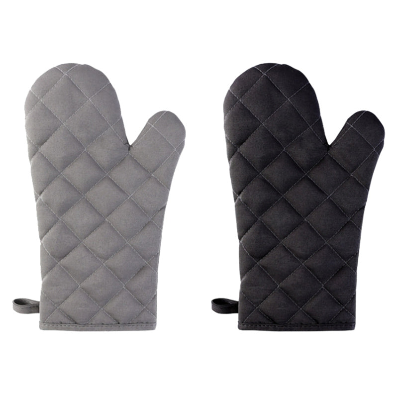 1 Pair Rhombus Texture Cotton Gloves Baking High-Temperature Resistant Thickened Microwave Oven Gloves Kitchen Tools
