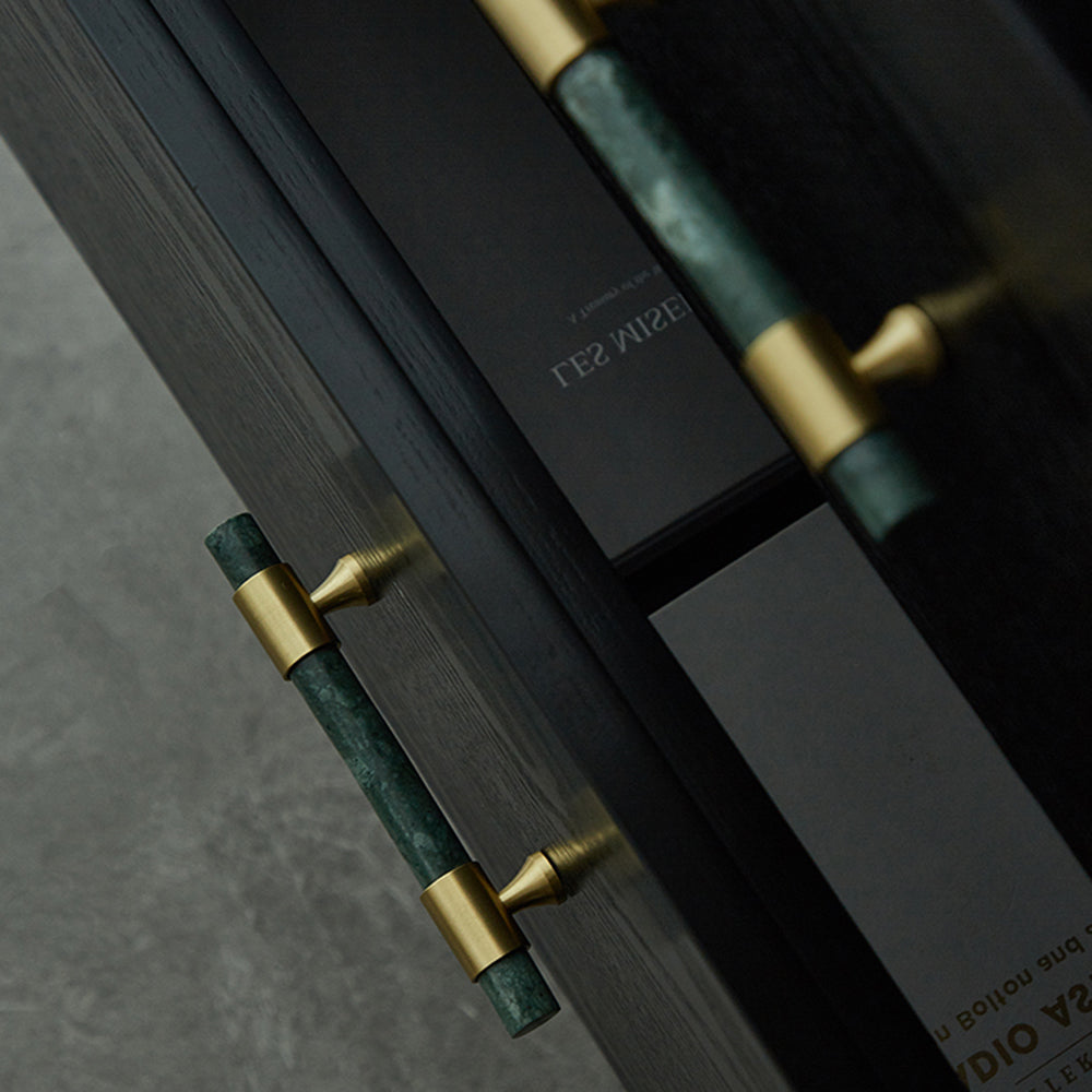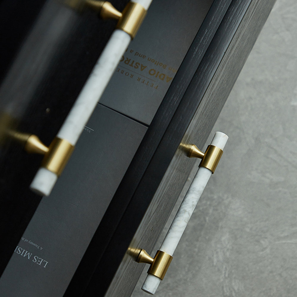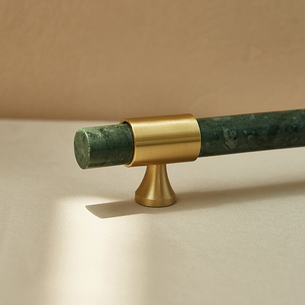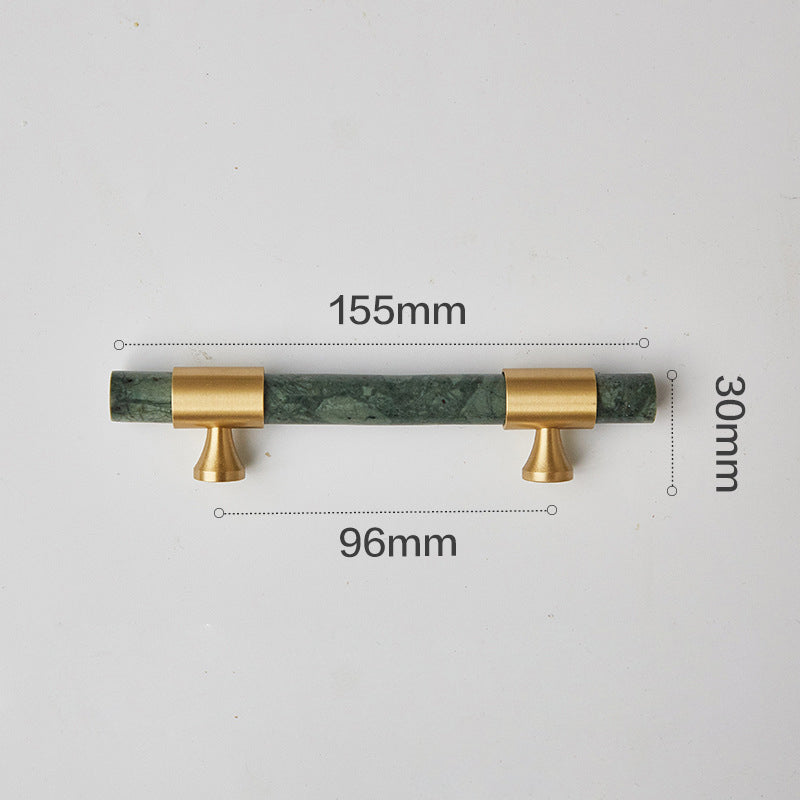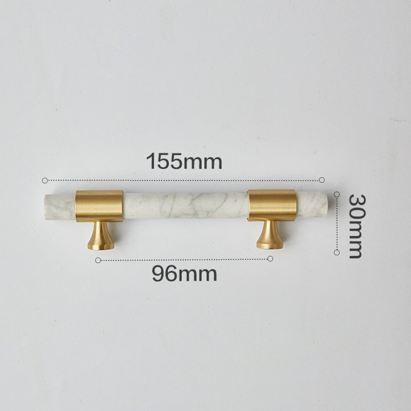 155mm Kitchen Cabinet Door Bar Pull Marble+Brass Home Decor Hardware Handle with 25mm Screw, 96mm Hole Distance