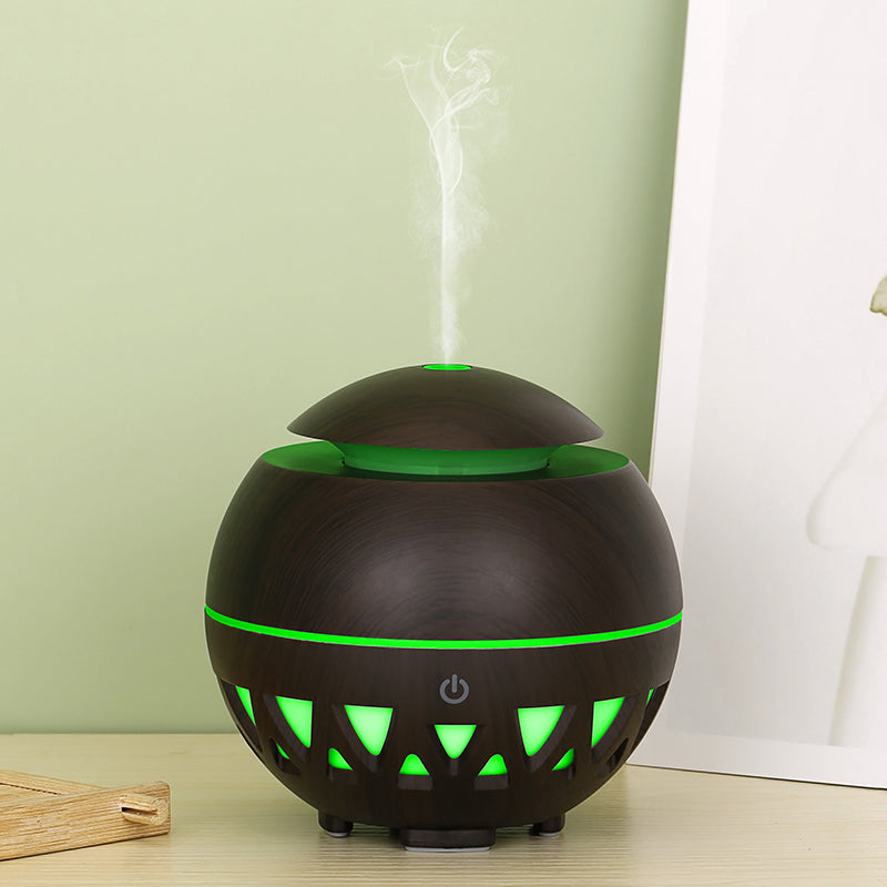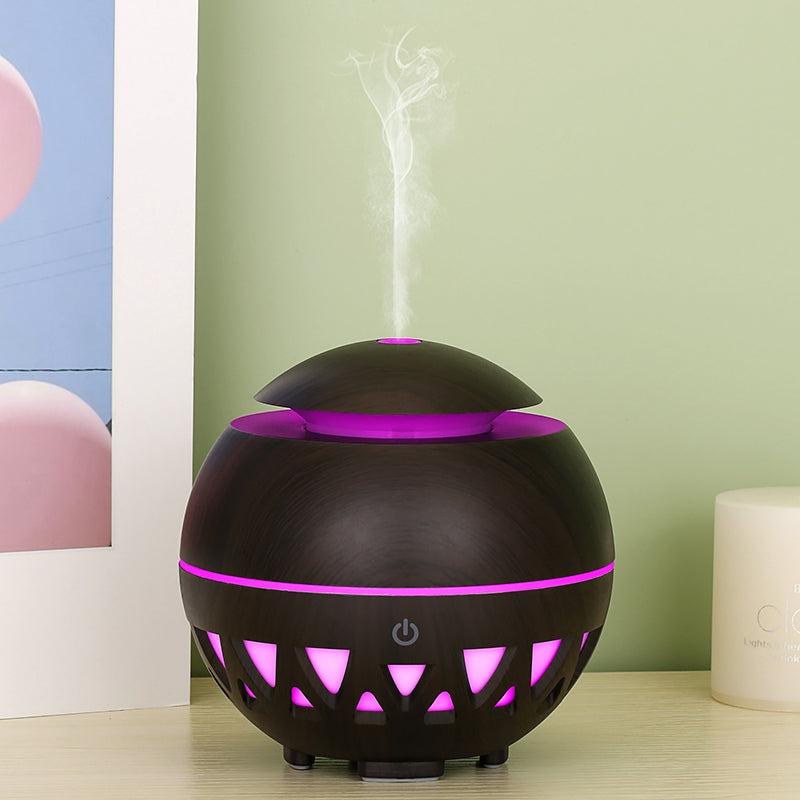 160ml Ultrasonic Humidifier Wood Grain Hollow Mist Humidifier with Colorful Light (No CE Certificate)