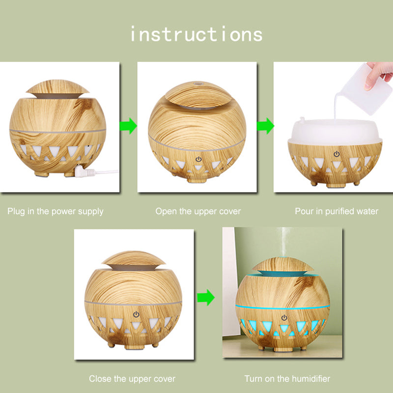 - Adding the right amount of essential oils (not included) releases bursts of fragrance