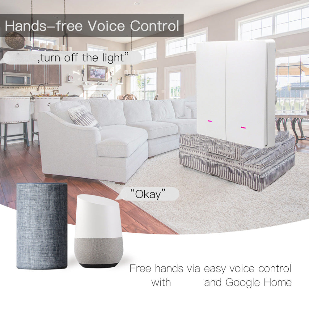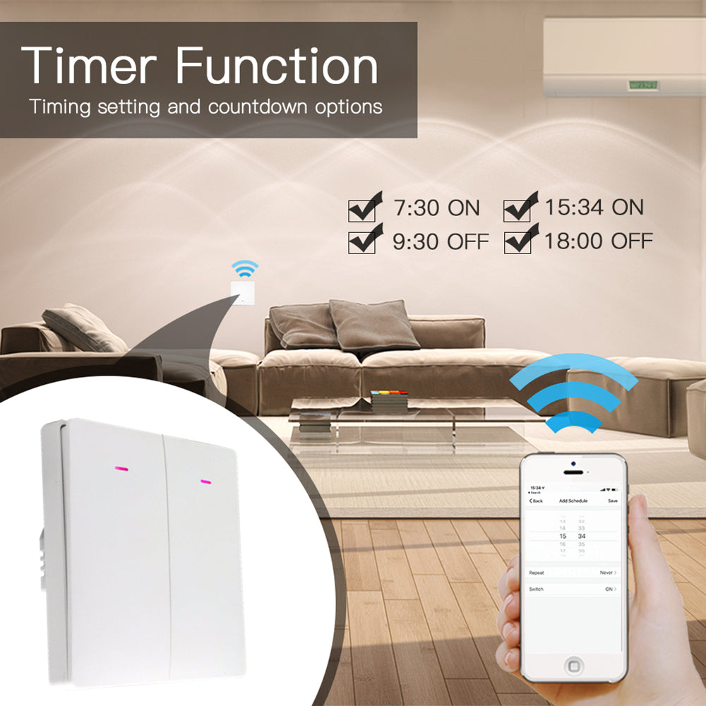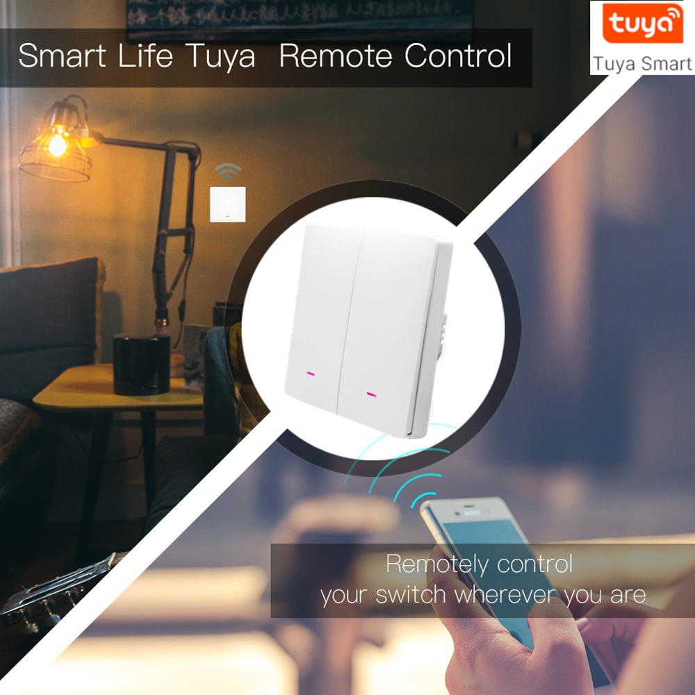 2-Gang Smart WiFi Switch Light Zero Fire Version Neutral Wire Fire Wire Required Voice Control Wall Switch Controller, EU Plug