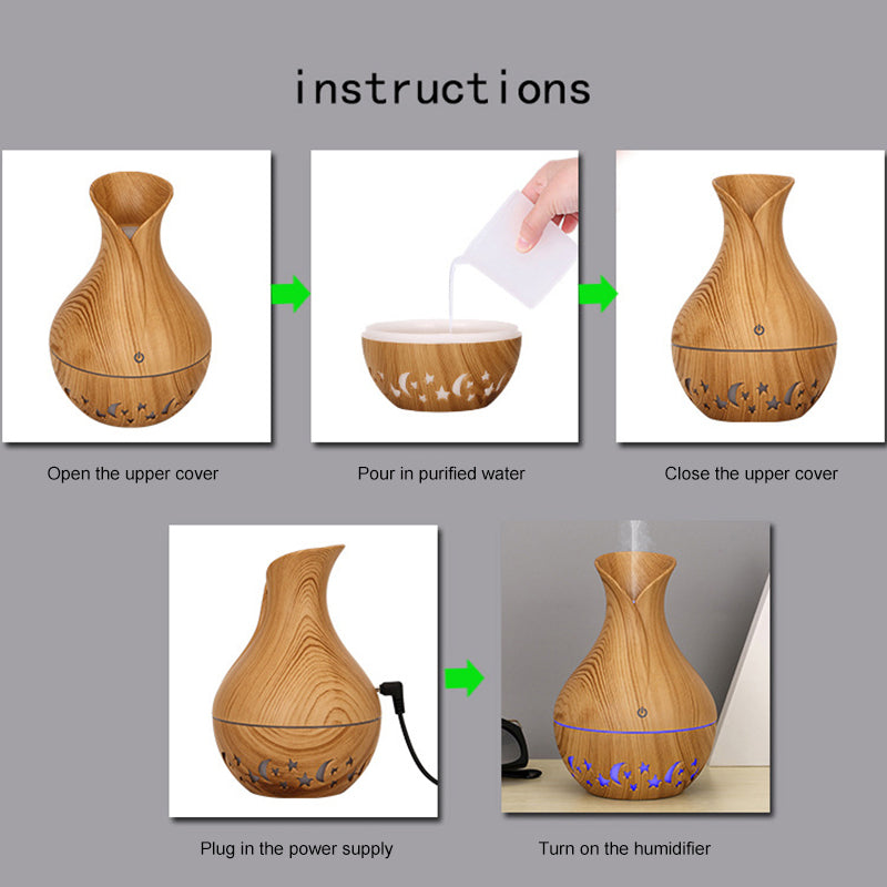 200ml Vase Shape Air Humidifier Moon Star Hollow Mist Maker Silent Fog Sprayer with Colorful Light (with CE)