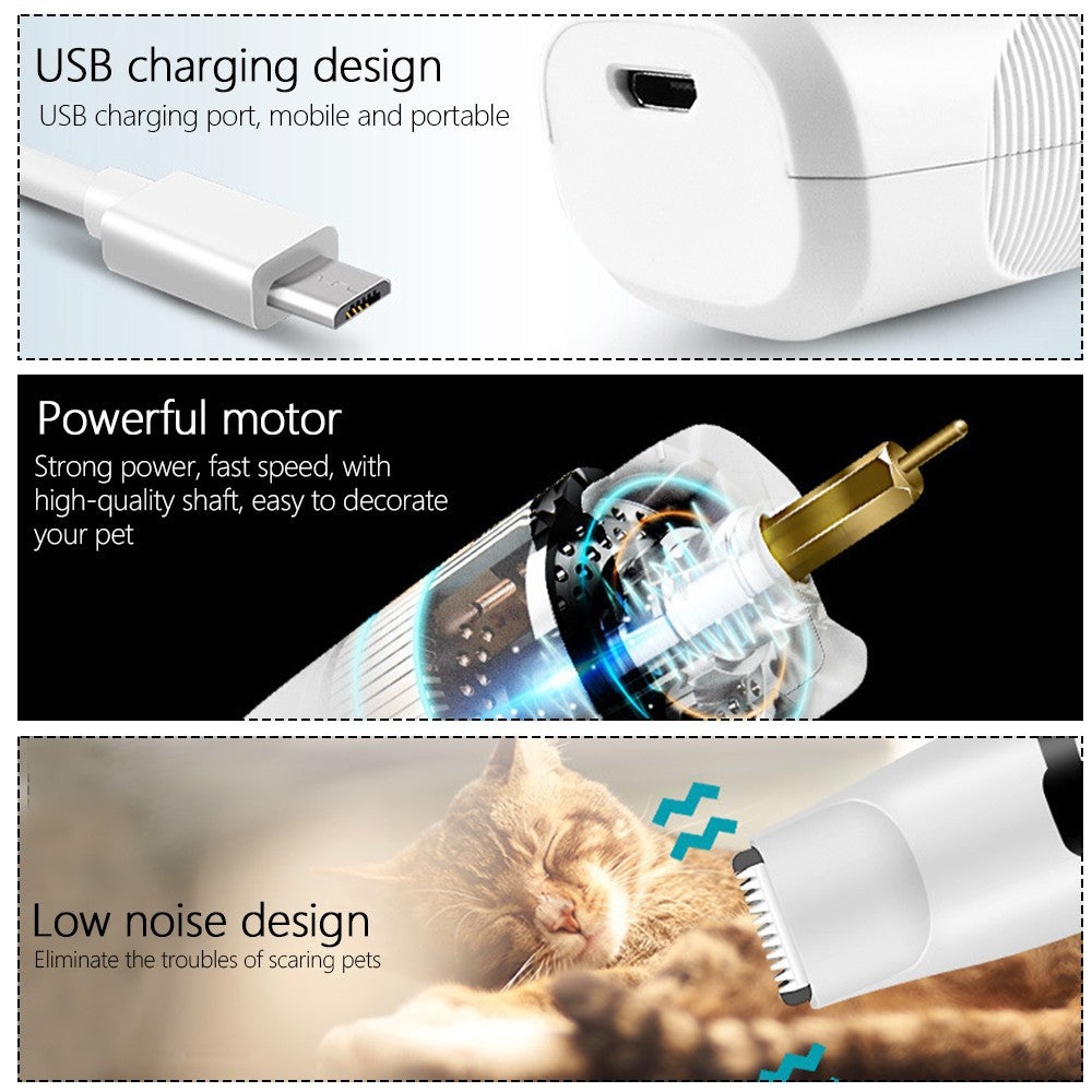 3 In 1 Pet Grooming Kit Set Rechargeable Cat Nail Clipper Dog Paw Grinder Hair Trimmer