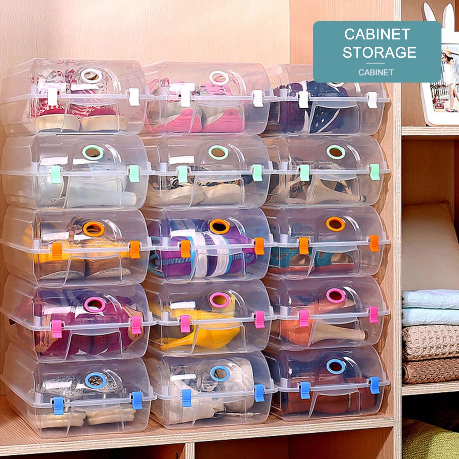 4PCS Clear Design Thickened Shoe Organizer Hard Plastic Shoe Storage Box for Home Closet Shelf, Size: S