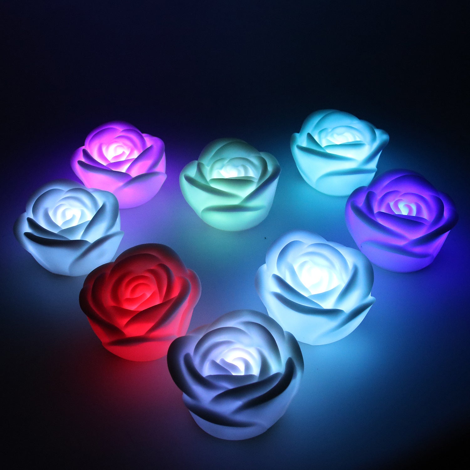 4Pcs Romantic Rose Flower Shape Colorful Tea Light Flameless LED Candle Light for Wedding Party