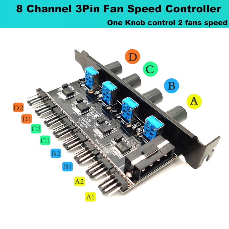 4Pin 3Pin 8 Way 4 Knob Computer Case Cooling Fan Hub Speed Controller Regulator Splitter Adapter (4-pin IDE Power Supply)