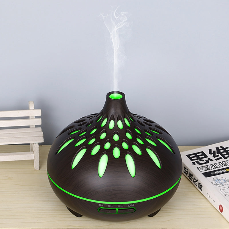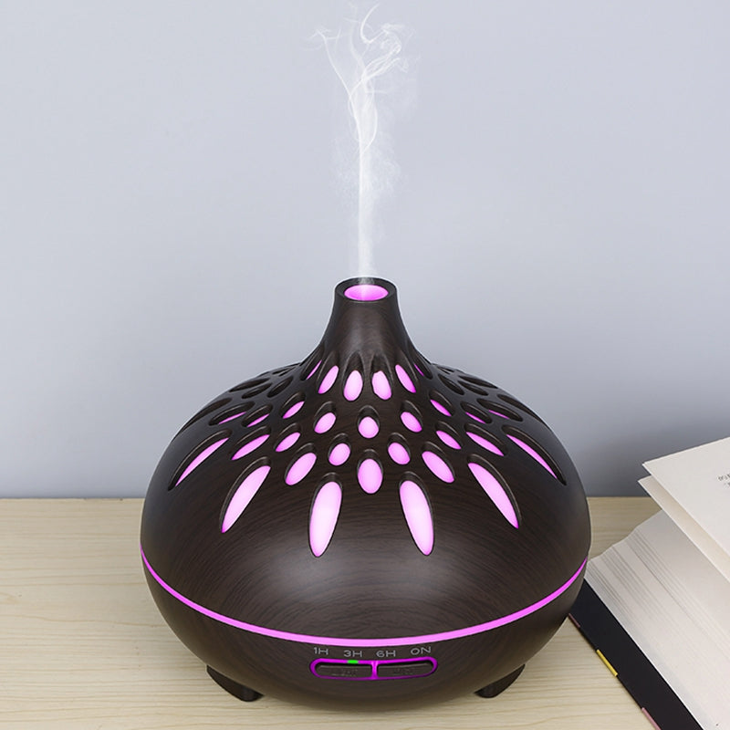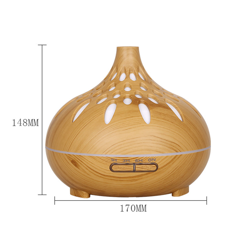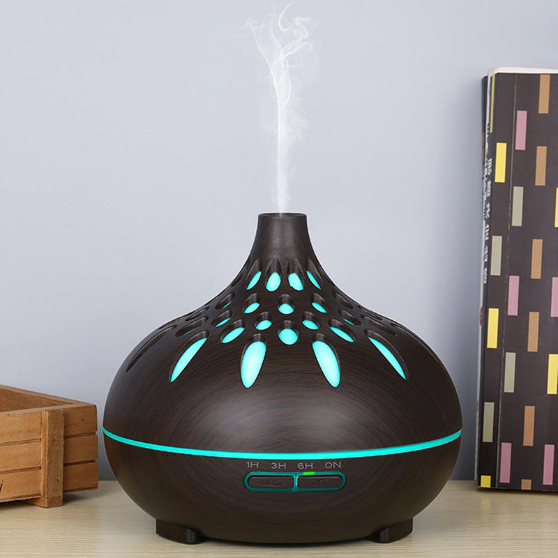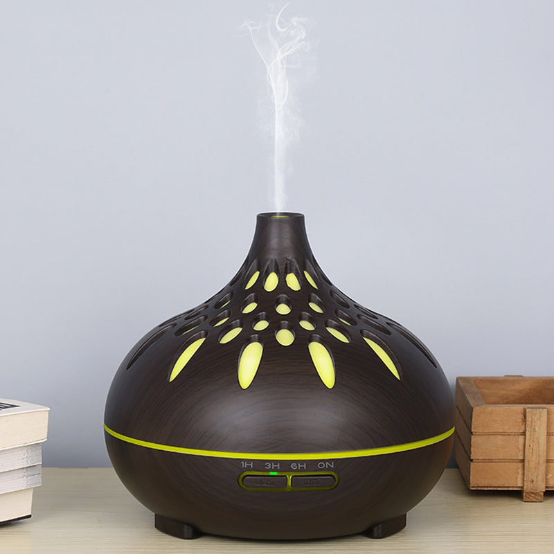 500ml Mute Humidifier Colorful Light Wood Grain Hollow Aroma Diffuser with Remote Control (No CE Certificate)
