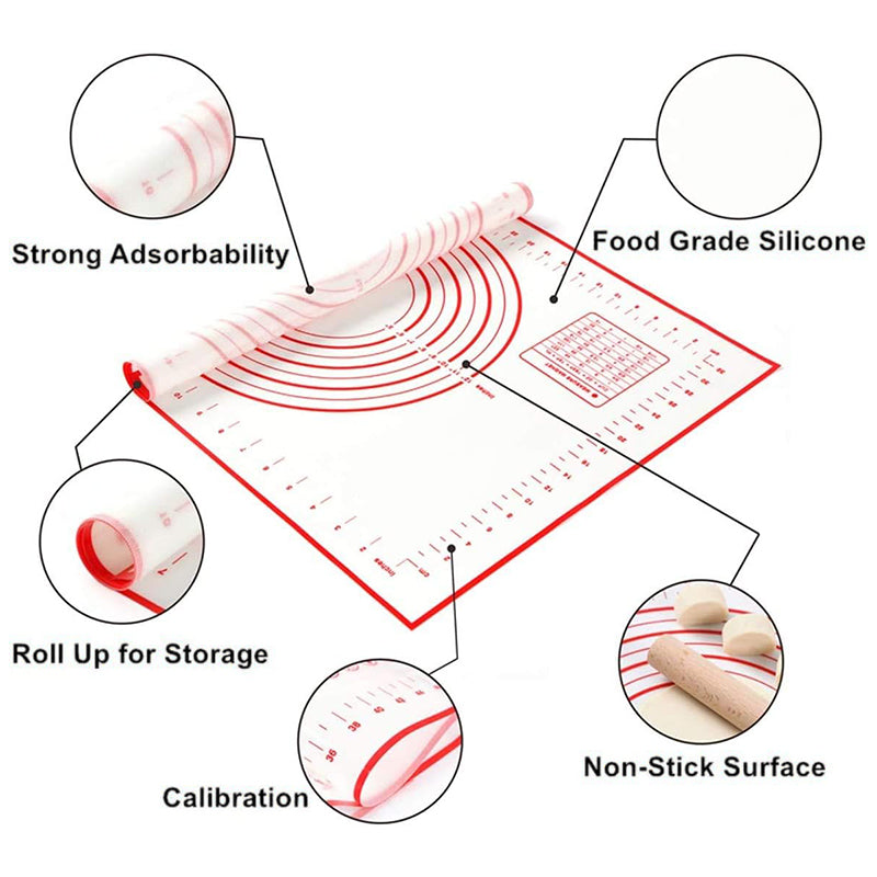 50x60CM Dough Rolling Mat Non-stick Fiberglass Cloth + Silicone Pastry Pad (BPA-Free, No FDA Certified)