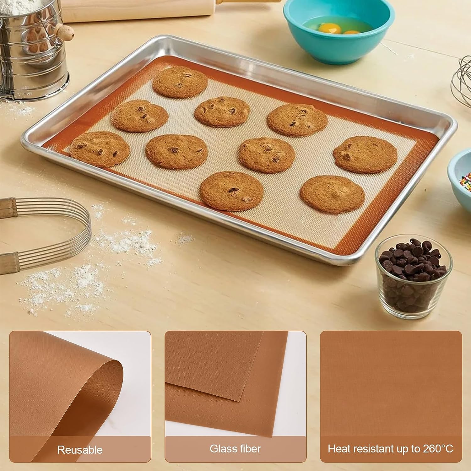 - This baking mats are made from fiber glass and PTFE, a very durable and tear-resistant material, so they can be used for a long time, heat resistant and safe