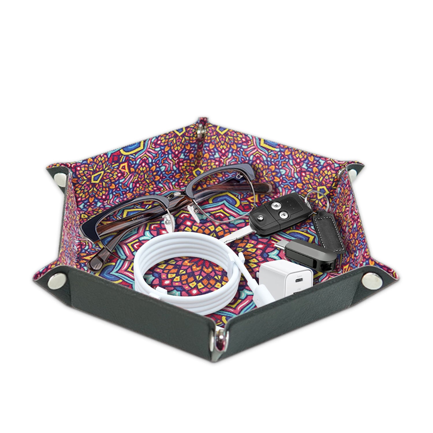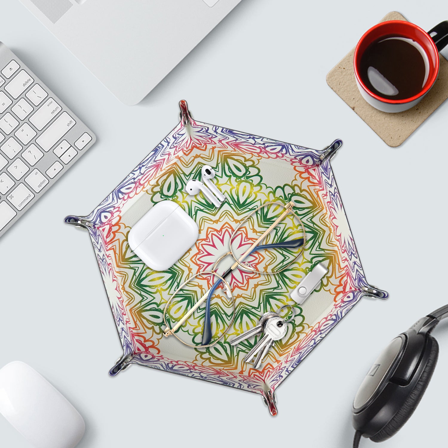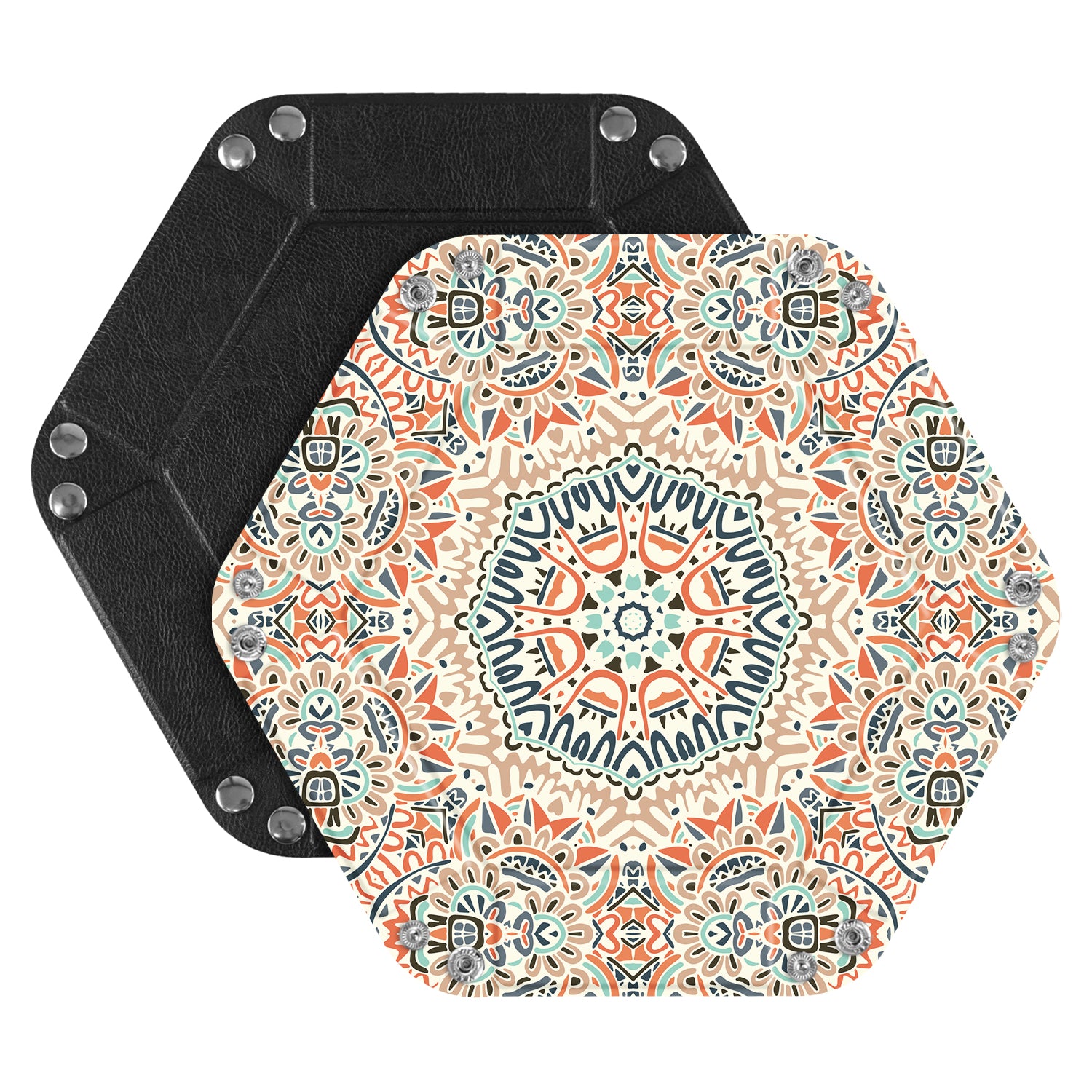 7-inch PU Leather Sundries Organizer Tray Hexagon Home Desktop Storage Tray