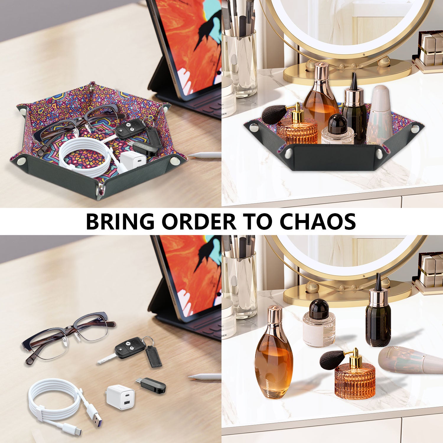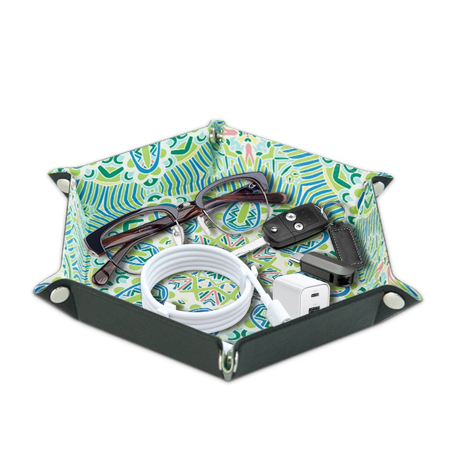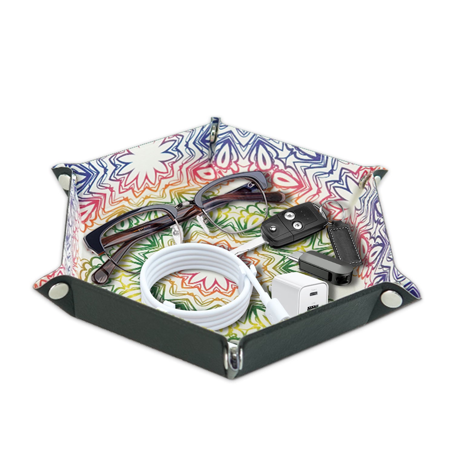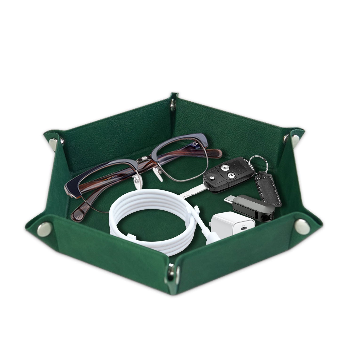 7-inch PU Leather Sundries Organizer Tray Hexagon Home Desktop Storage Tray