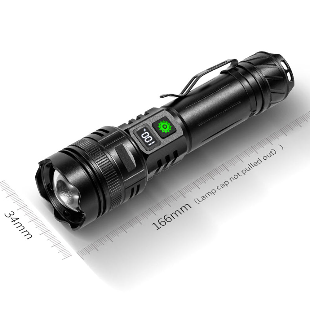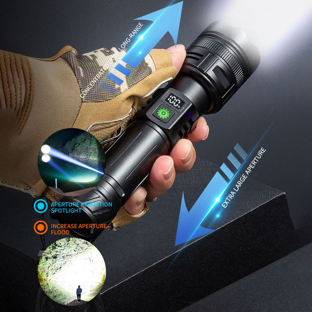 A065-Laser Home Outdoor Flashlight 20W Purple Light Portable LCD Display Flashlight (No Battery)