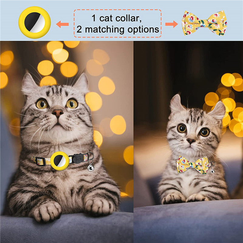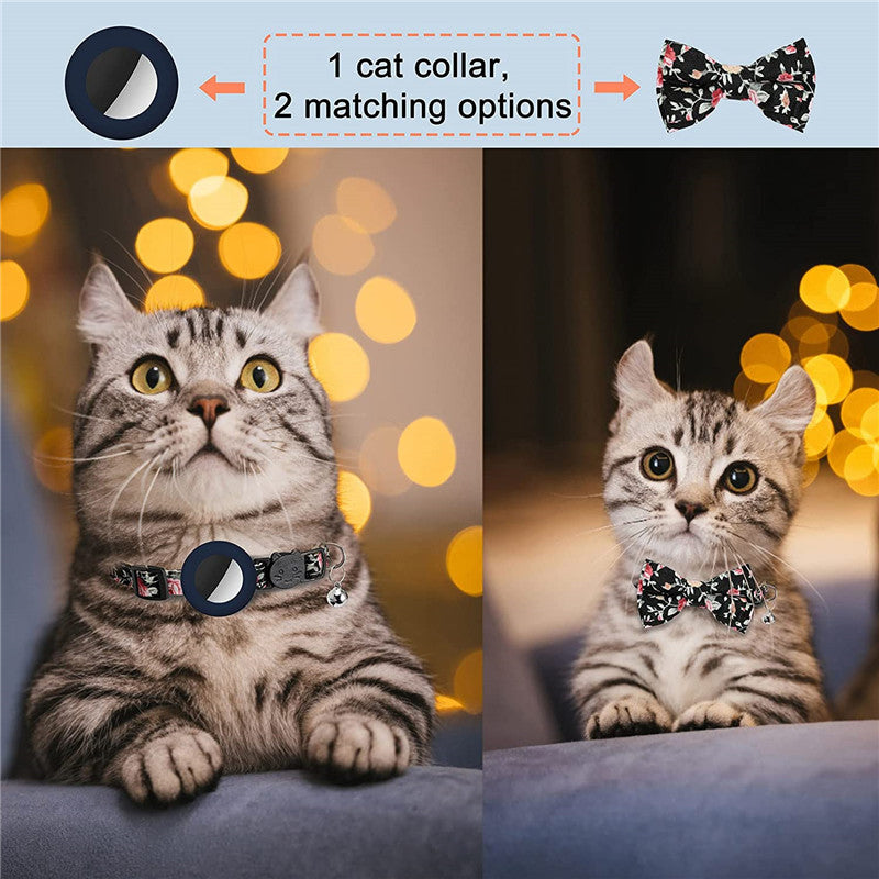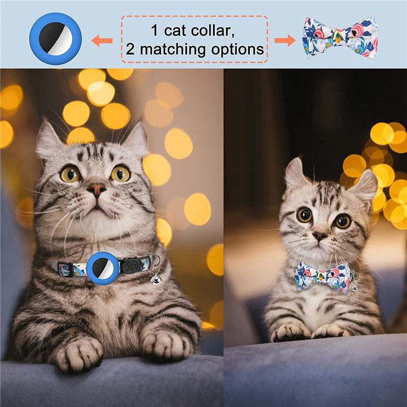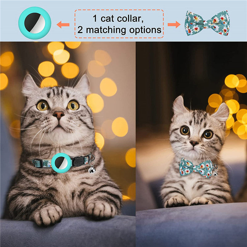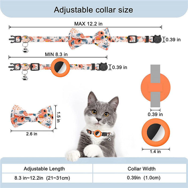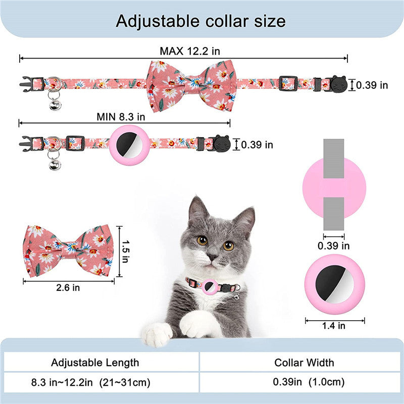 Adjustable Pet Collar with Silicone Case+Film for AirTag GPS Cats Dogs Collar with Bell, Bow