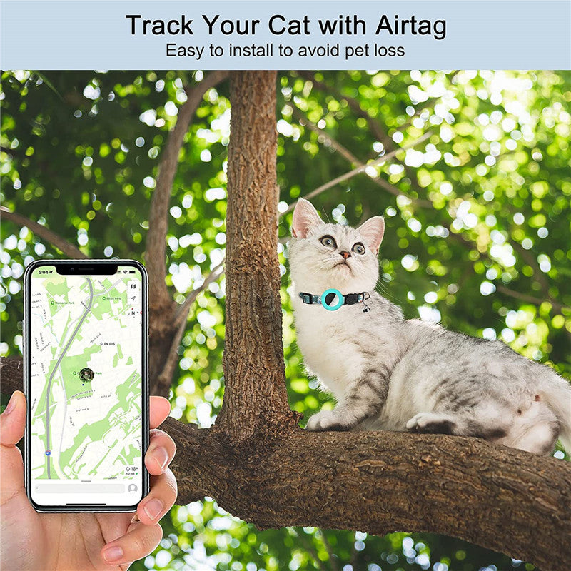 - The Air-Tag collar comes with an Air-Tag case that is waterproof and shockproof. Designed for cats and small animals, the small collar is retractable and out of reach of pets