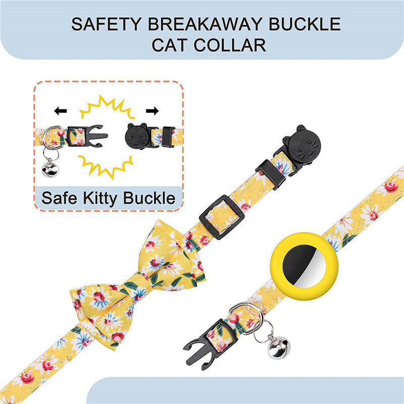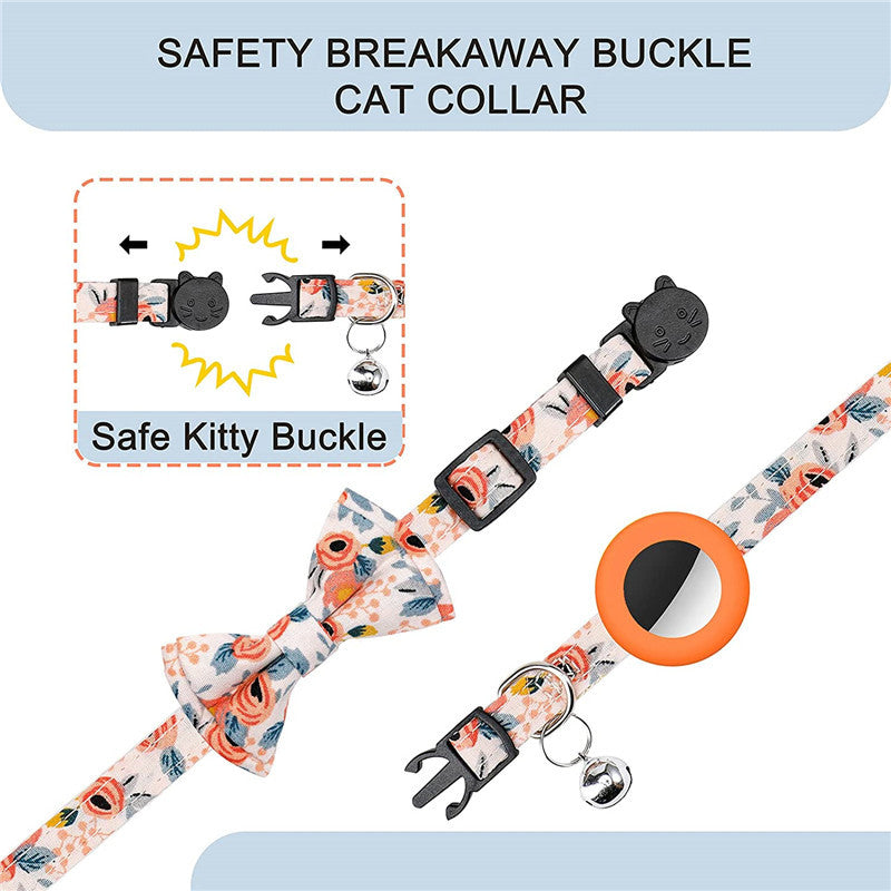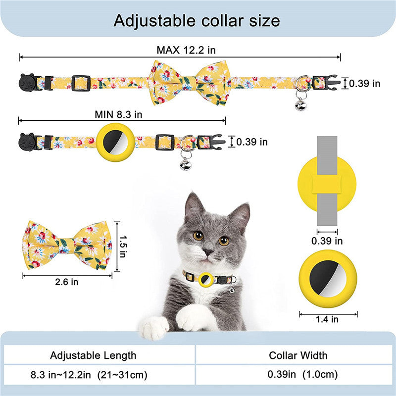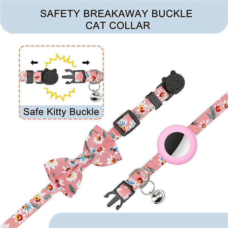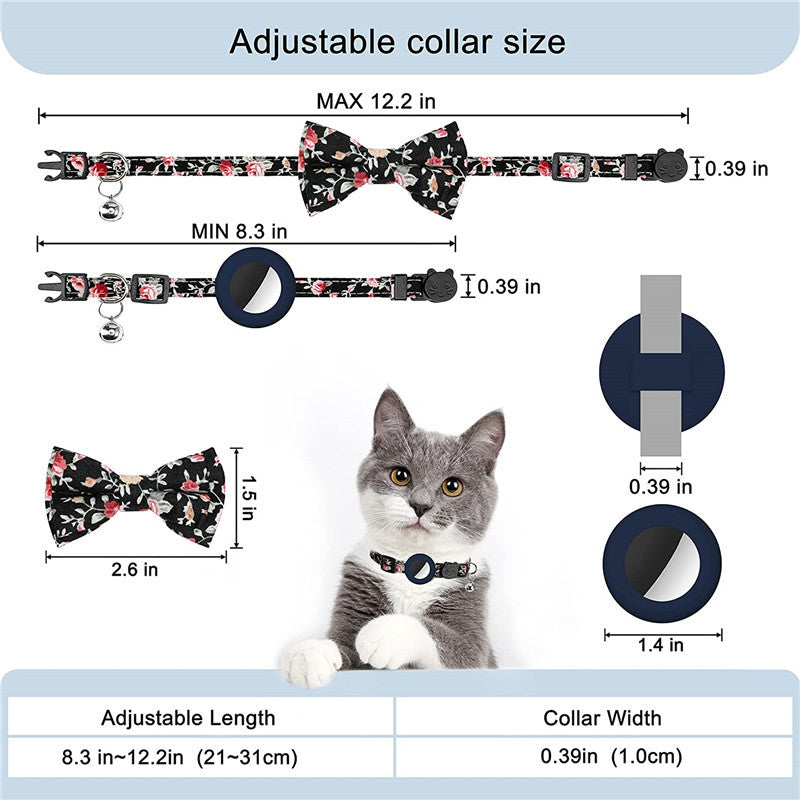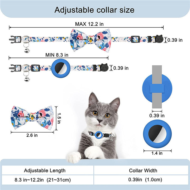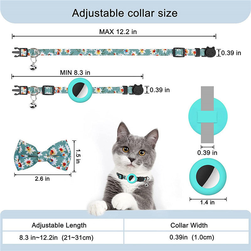 - Air-Tag Cat Collar Set with Silicone Case, Protective Film, Bow (Note: Air-Tag is not included )