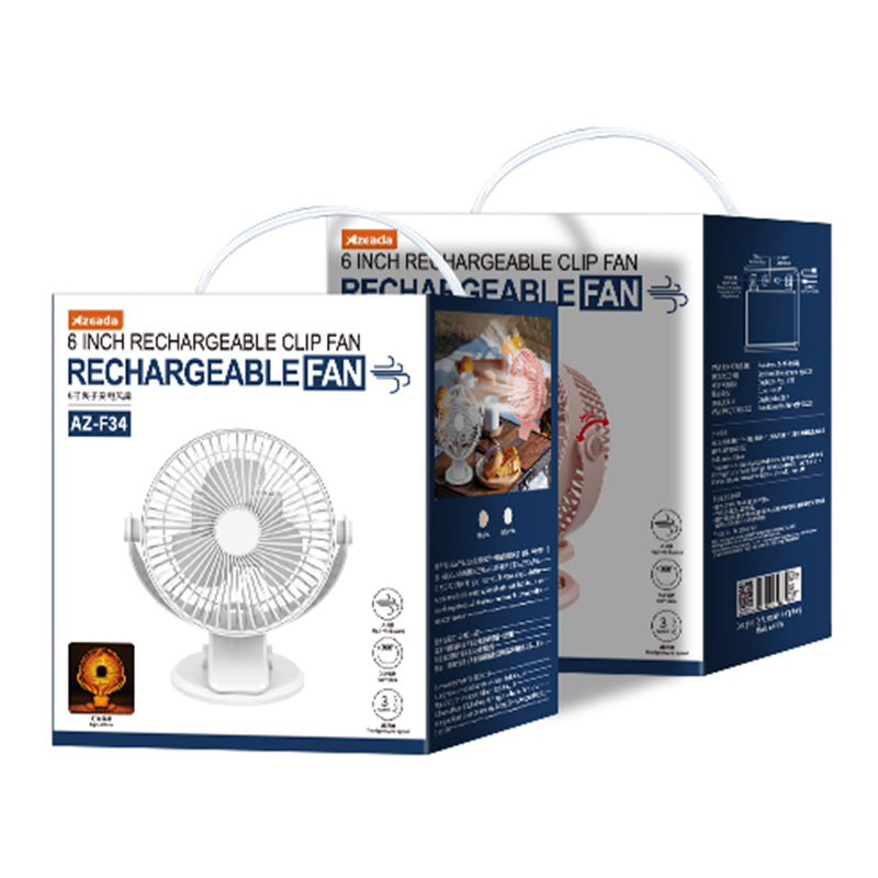 AZEADA AZ-F34 6-inch Desktop ABS Cooling Fan Summer Rechargeable Clip Design Fan Cooler