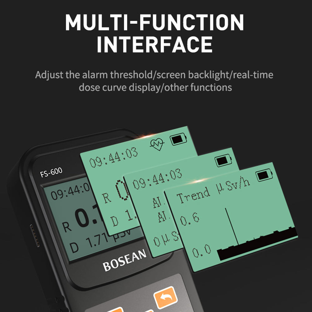 BOSEAN FS-600 Nuclear Radiation Detector Geiger Counter X-ray Beta Gamma Tester GM Counter Dose Rate Real-time Dosimeter