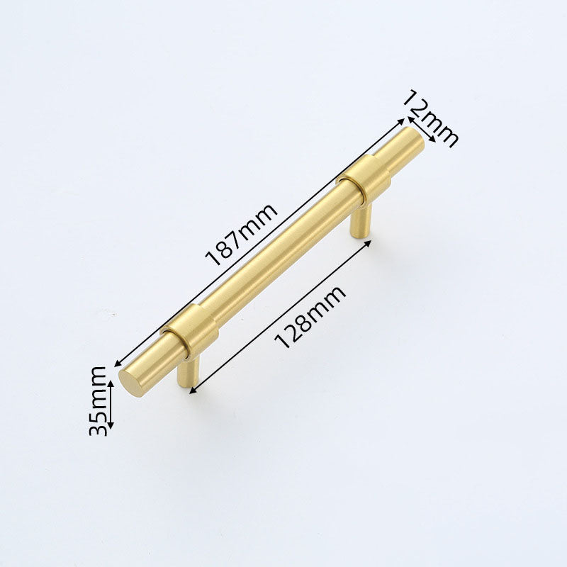 Brass Solid Cabinet Handles Modern Drawer Pulls with 25mm Screw, Hardware Round Rod Pulls 128mm Hole, 187mm Length