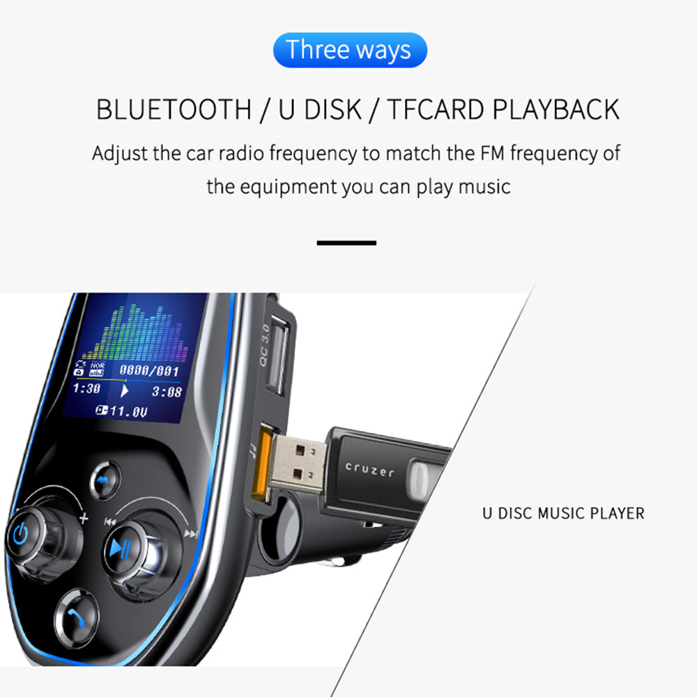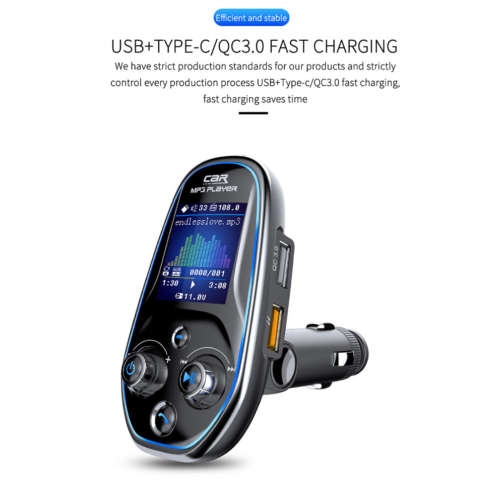 BT29A EQ FM Bluetooth Transmitter Car MP3 TF/U Disk Player with QC 3.0 + Type-C Fast Charging
