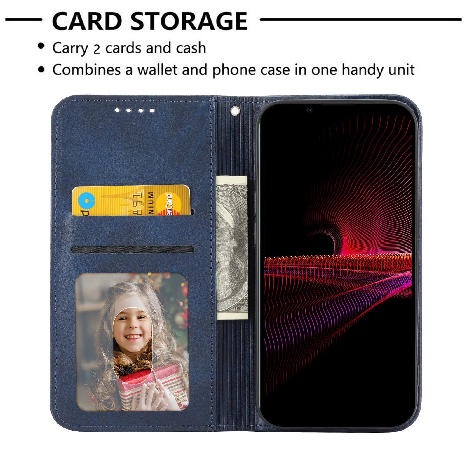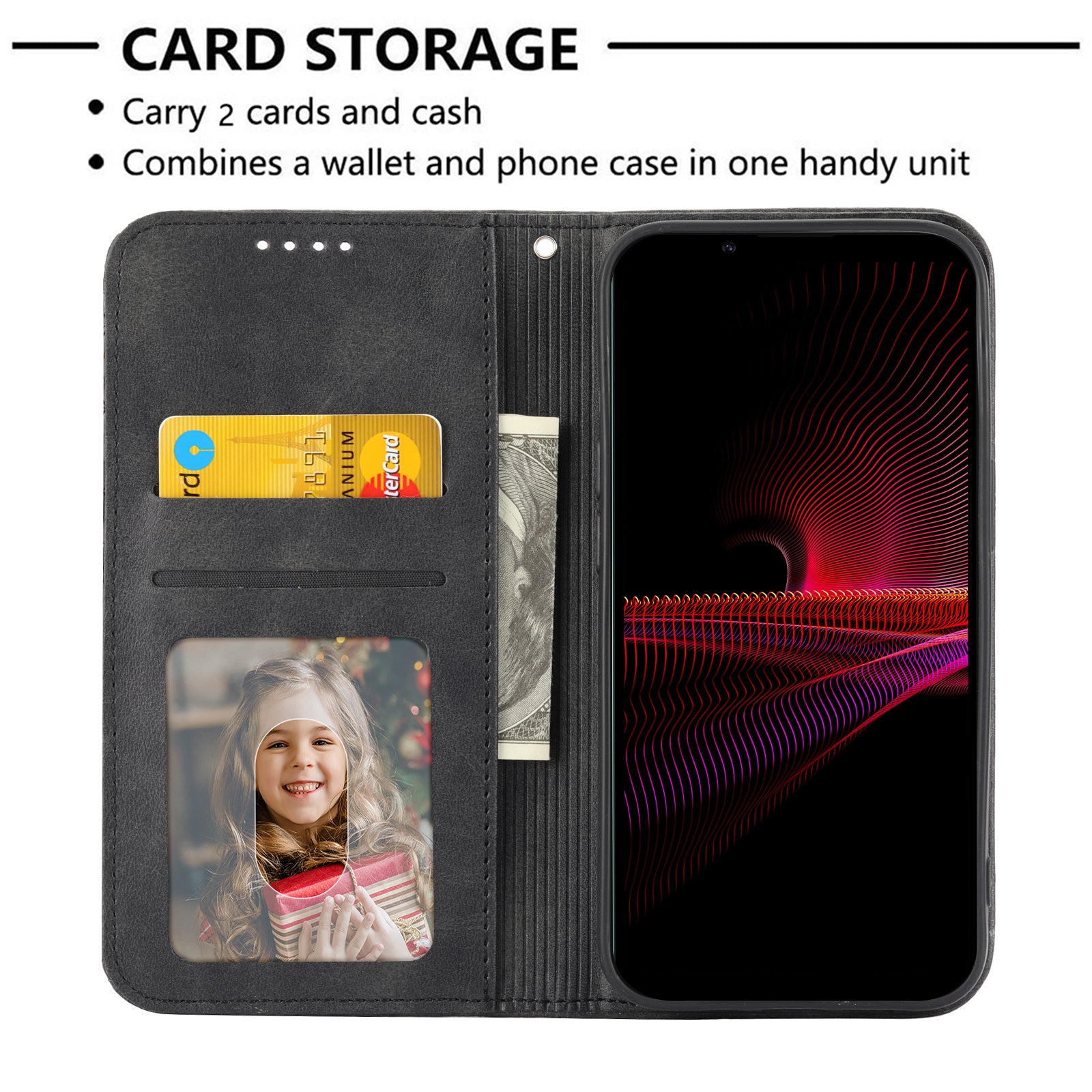 - Built-in card slots and cash compartment for easy carrying of your credit cards and money