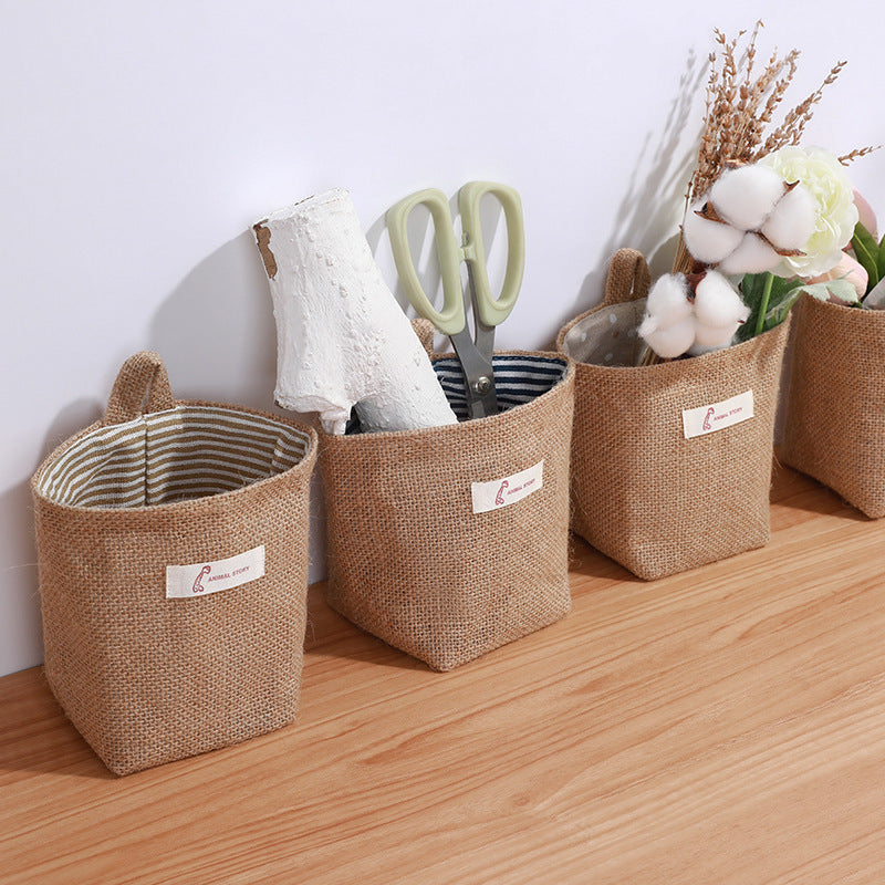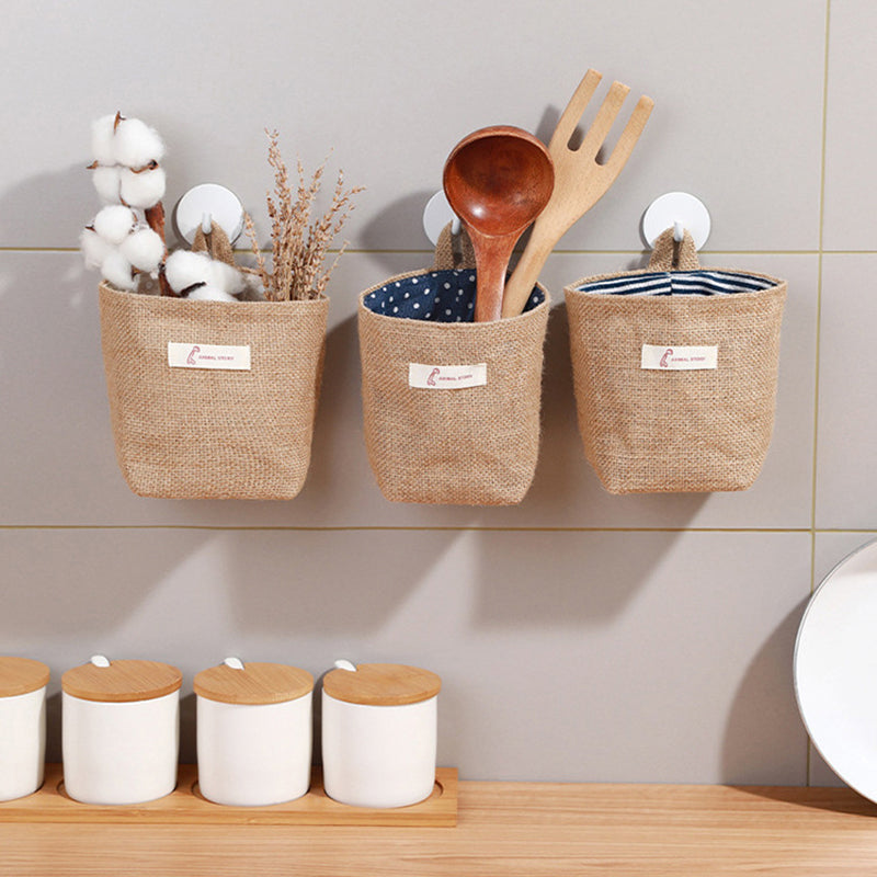 Cotton Linen Washable Storage Bag Kitchen Desktop Hanging Organizer Container