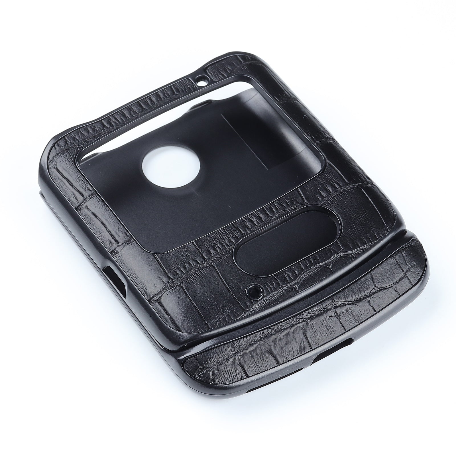 - Hard plastic case coated with genuine leather