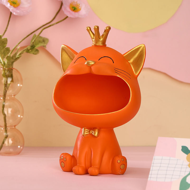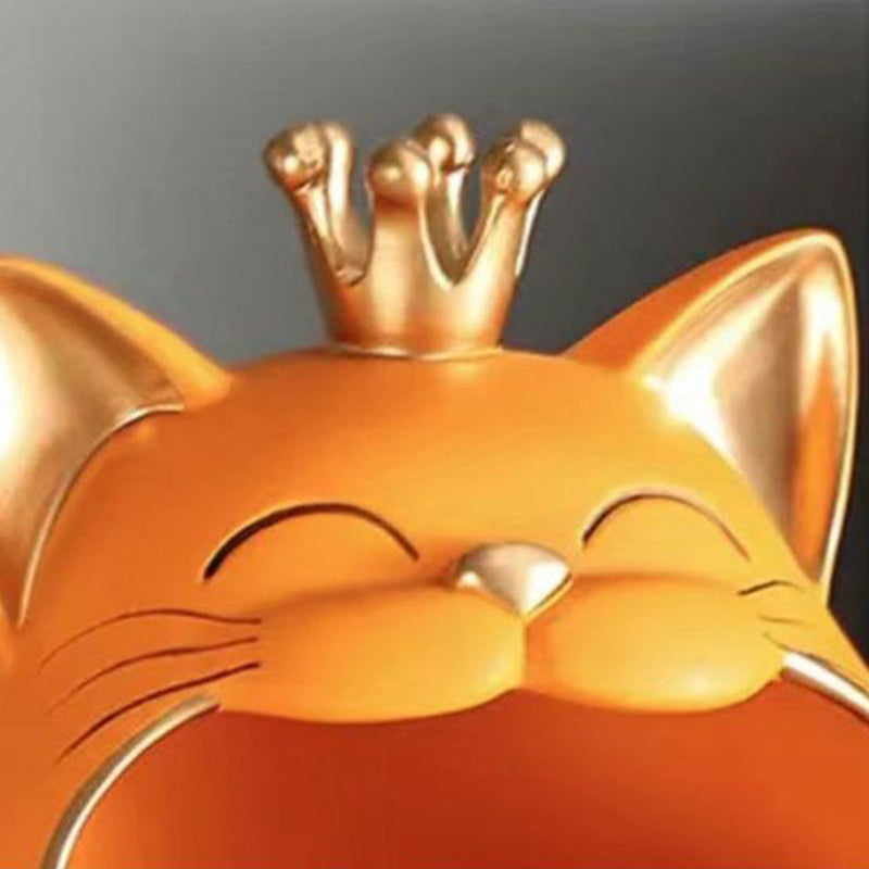 Crown Cat Sculpture Candy Sundries Keys Holder Storage Box Resin Cat Statue Home Decor, Size S