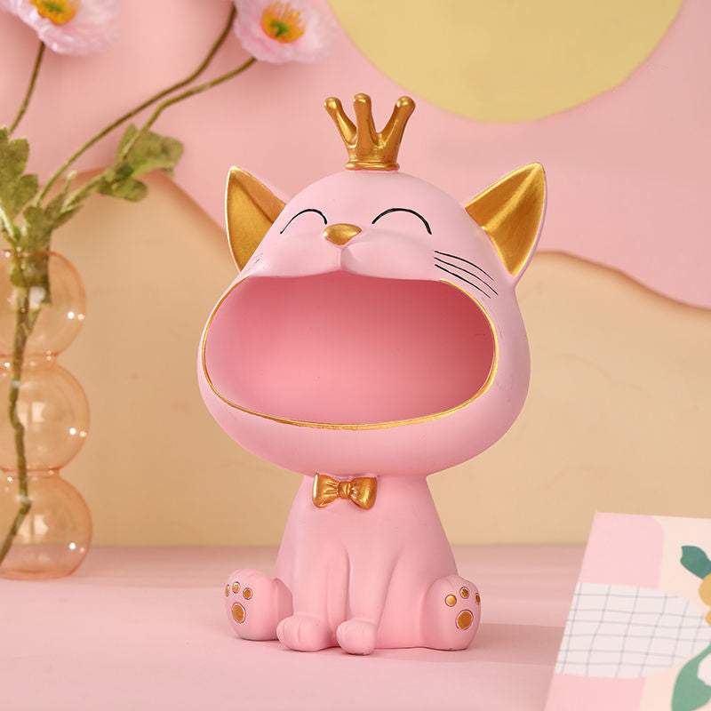 - The cat statue with the large mouth adds fun and adds much space for storage