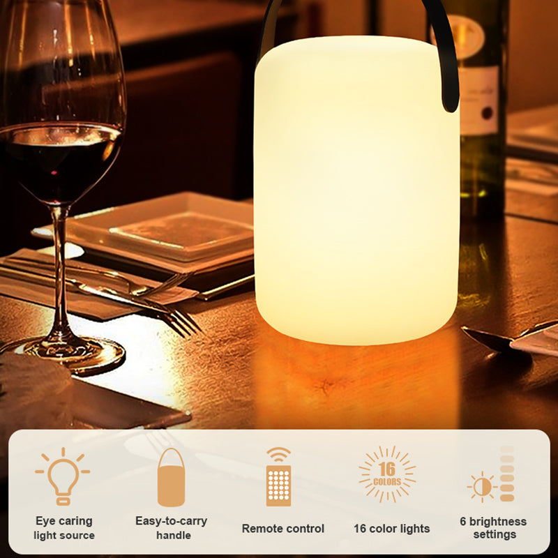 Cylinder Shape Portable LED Lamp Adjustable Brightness 16 Colors USB Rechargeable Light with Remote Controller
