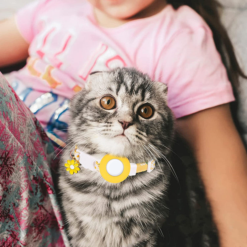 Daisy Pattern Adjustable Pet Collar with Silicone Case + Protective Film for AirTag Tracker