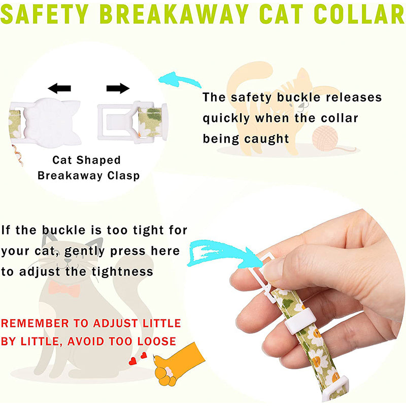 - The collar is designed with a breakaway safety buckle, which is adjustable to prevent choking and poking and can be easily loosened when pulled with force, making it safer for your pet to walk around the house