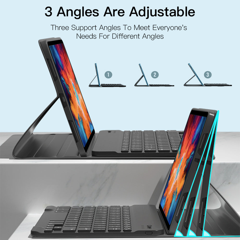 - Multi-View Kickstand Keyboard Cover: Features a flip magnet separation design with different standing angles built into the bottom of the cover to ensure a comfortable viewing angle