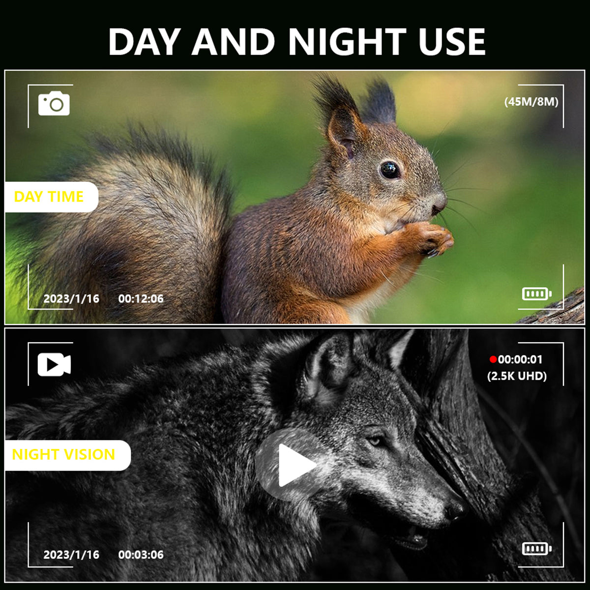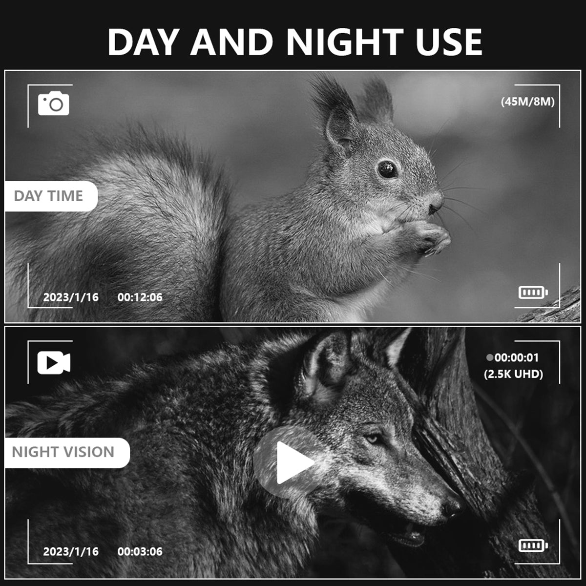 - 8-level brightness adjustment: Internal dual display screen with 8-level brightness adjustment. Better observation of animals and prevention of animal discovery