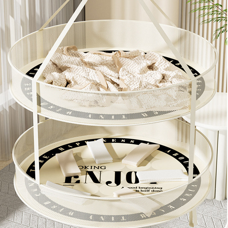 Dual-Layer 40CM Round Hanging Drying Rack Net Pocket Mesh Drying Basket (80g High Density Mesh Cloth)