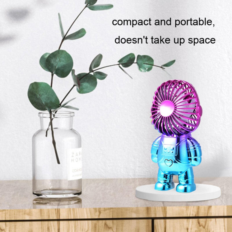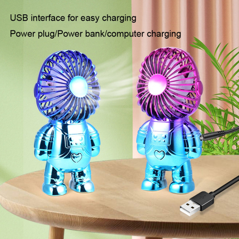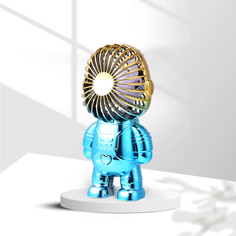 Electroplating Astronaut ABS Mini Handheld Desktop Fan Summer Fan Cooler with Gradient Light
