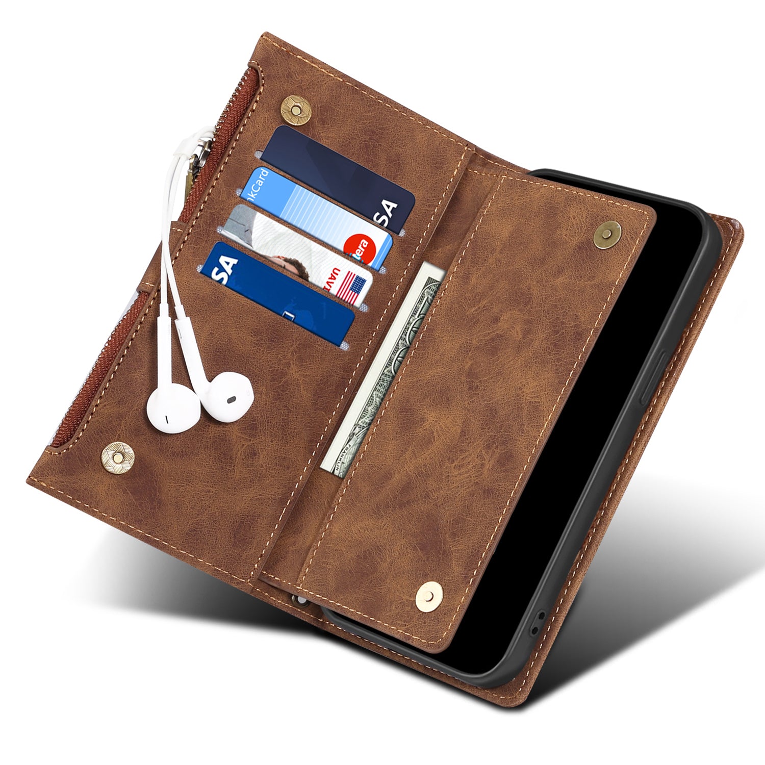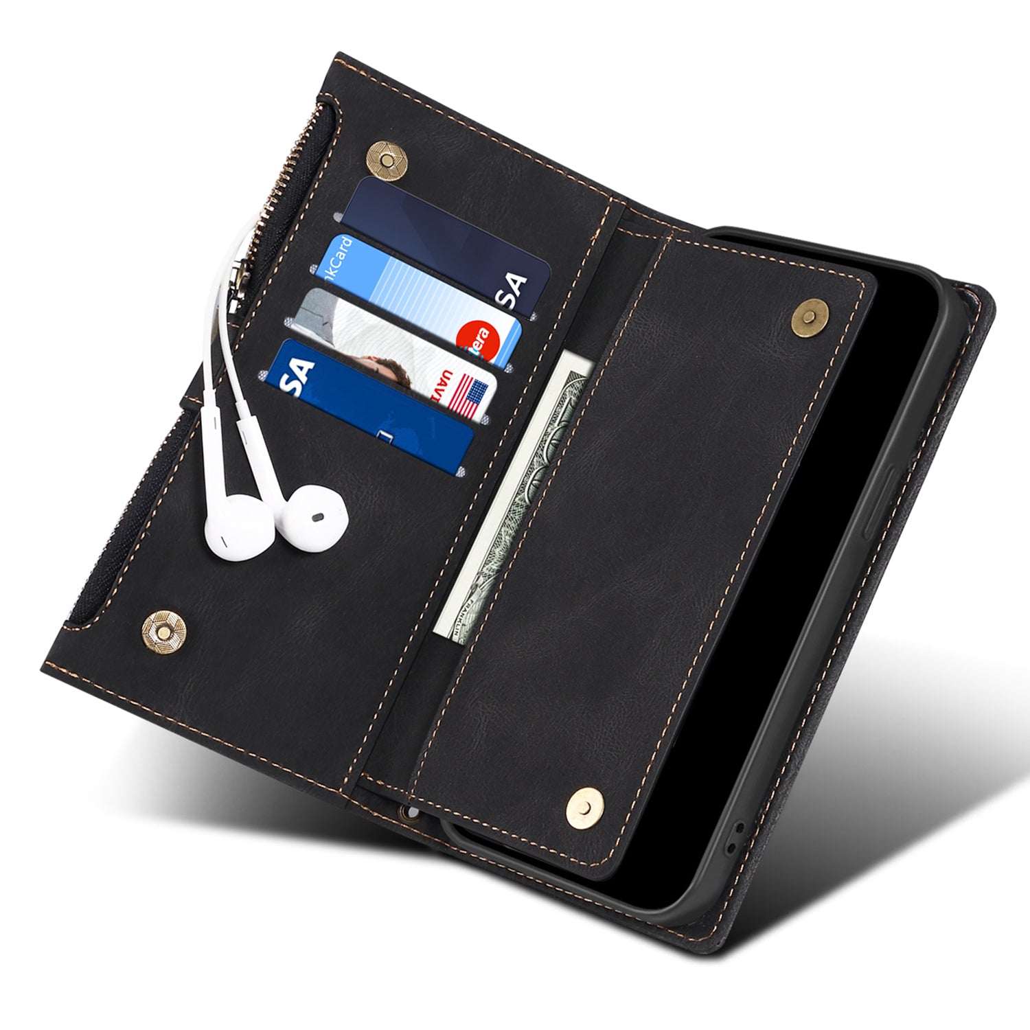 - Built-in card slots and cash pocket keep your valuables tidy and neat