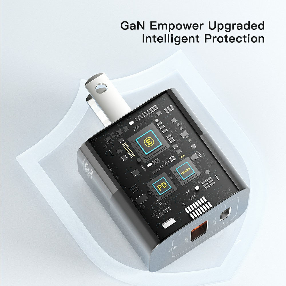 ESSAGER 33W GaN Wall Charger Portable Charger Block with USB-A+Type-C Dual Ports Mobile Phone Fast Charging Adapter
