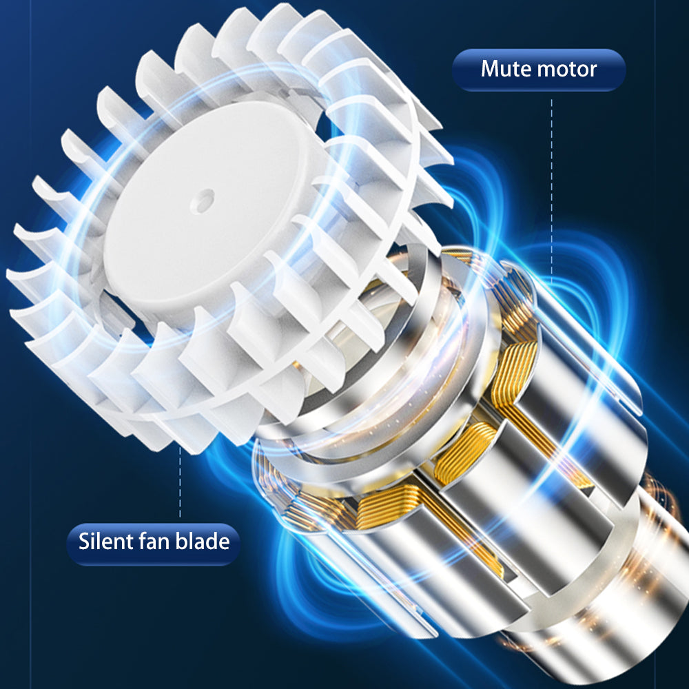 - Low-noise operation, leafless design, silent strong wind power, provide cooling wind around the neck
