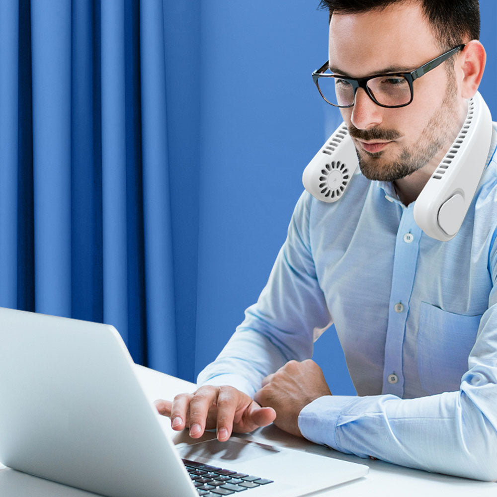 - USB rechargeable neck fan, convenient to charge via computer, cell phone charger, power bank, laptops, etc