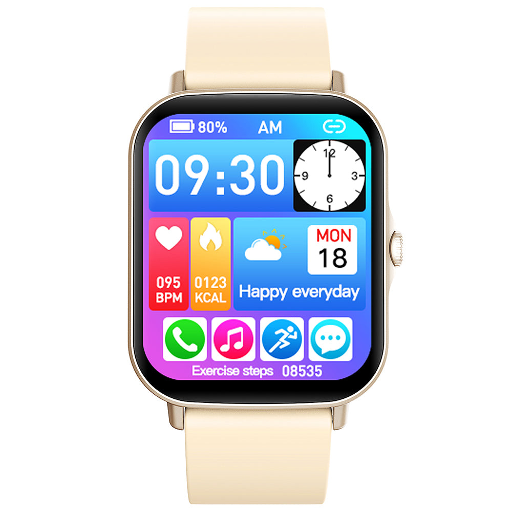 - Main functions: call, play music, body temperature monitoring, sleep monitoring, heart rate monitoring, blood pressure, blood oxygen, step counting, distance, calories, stopwatch, multi-sport modes (walking, running, cycling, basketball, football, badminton, skipping rope) , table tennis, tennis, baseball, yoga), call reminder, message reminder, alarm clock reminder, sedentary reminder, drink water reminder, medicine drink reminder, remote control camera, lift wrist to brighten the screen, etc.