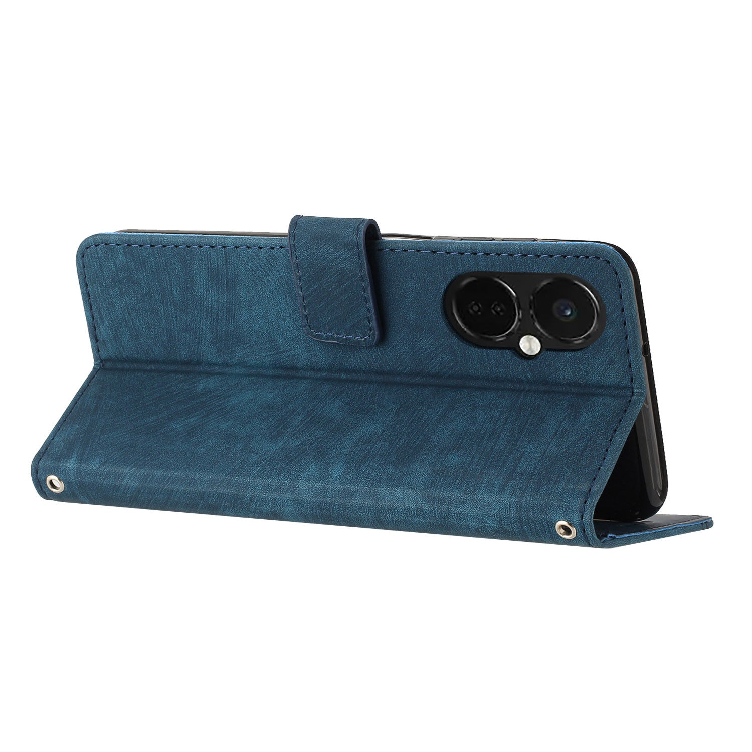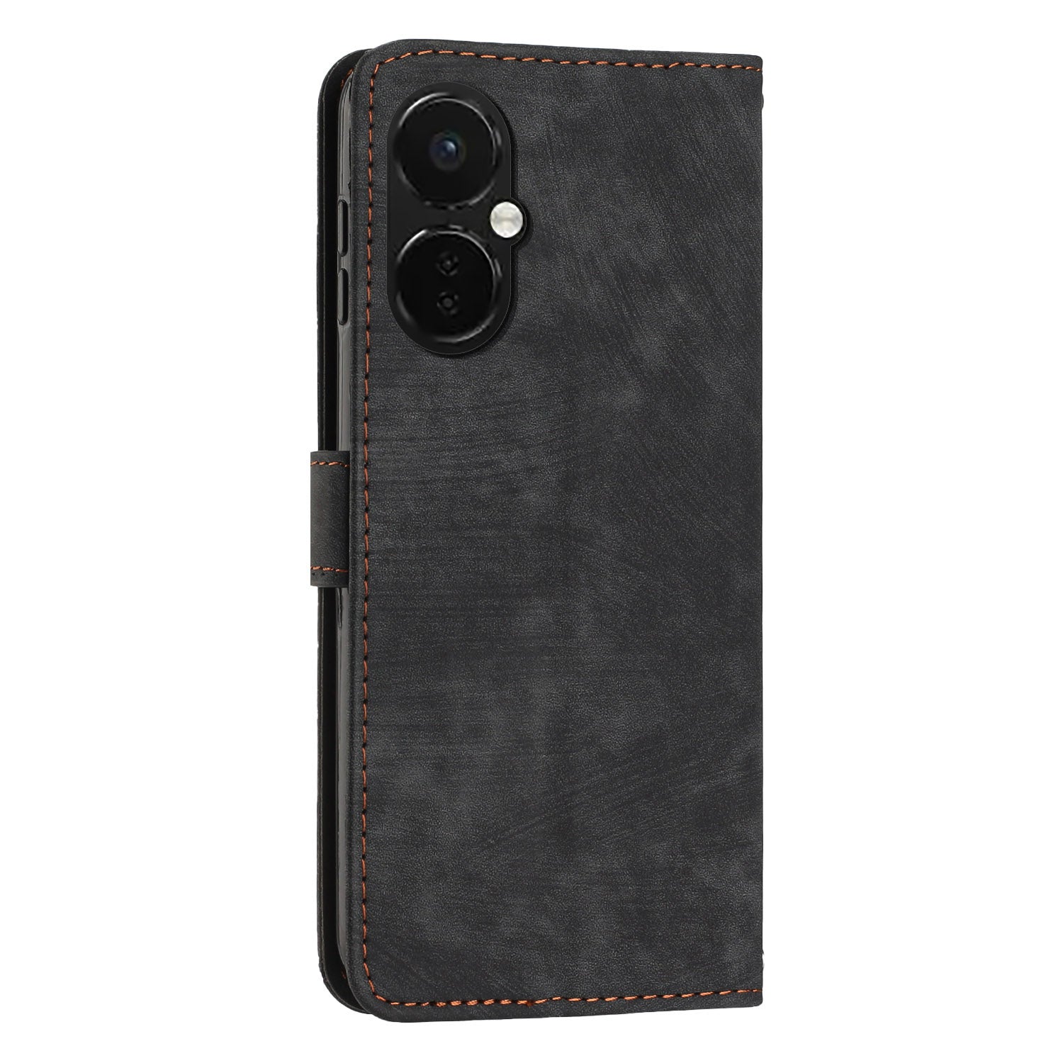 Flip Stand Phone Case for OnePlus Nord CE 3 5G , Imprint Lines PU Leather Skin-touch Phone Cover Wallet